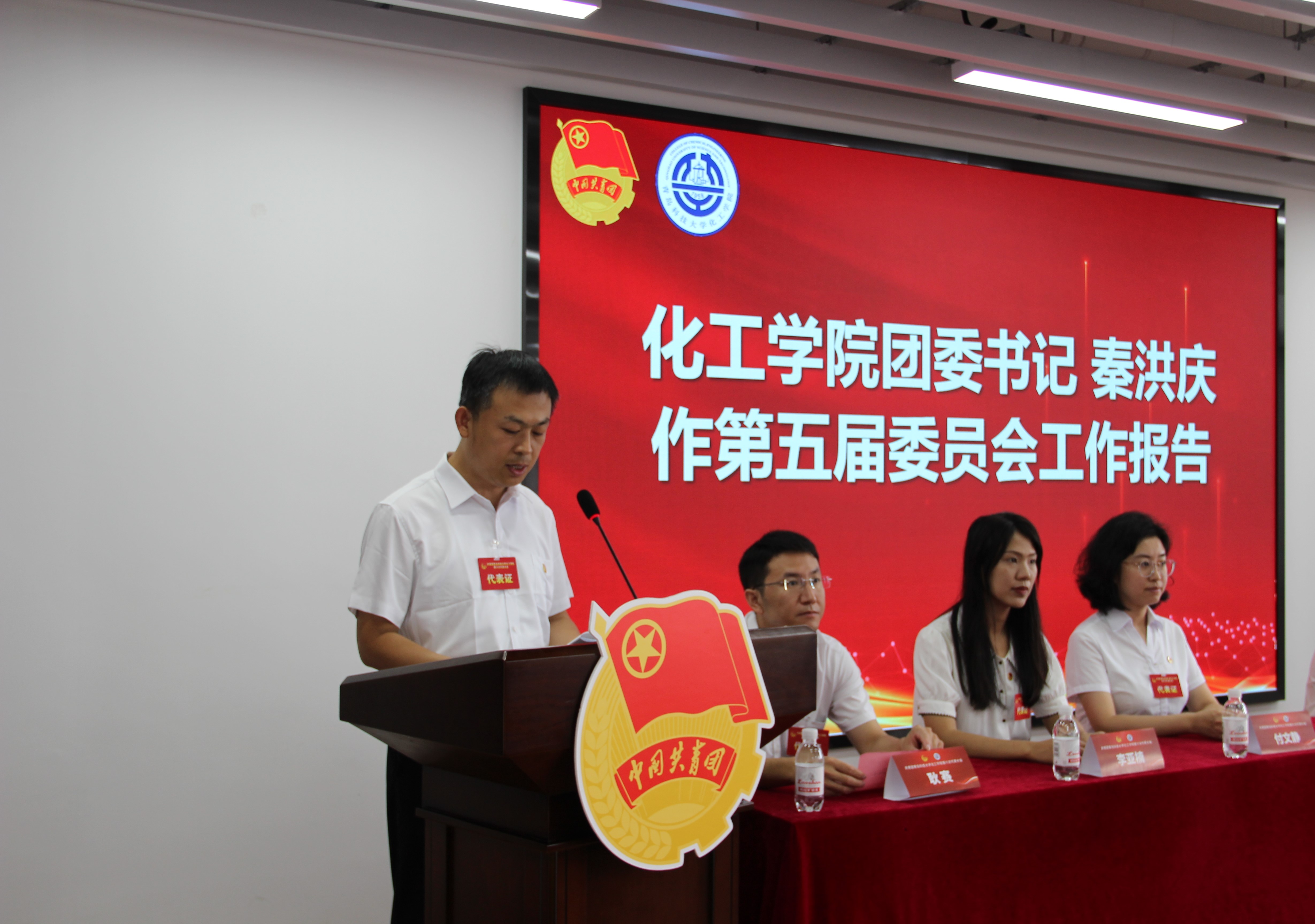 秦洪庆代表共青团766全讯白菜网化工学院第五届委员会作了题为《高擎旗帜跟党走,踔厉奋发新征程 努力开创化工学院共青团工作新篇章》的工作报告。