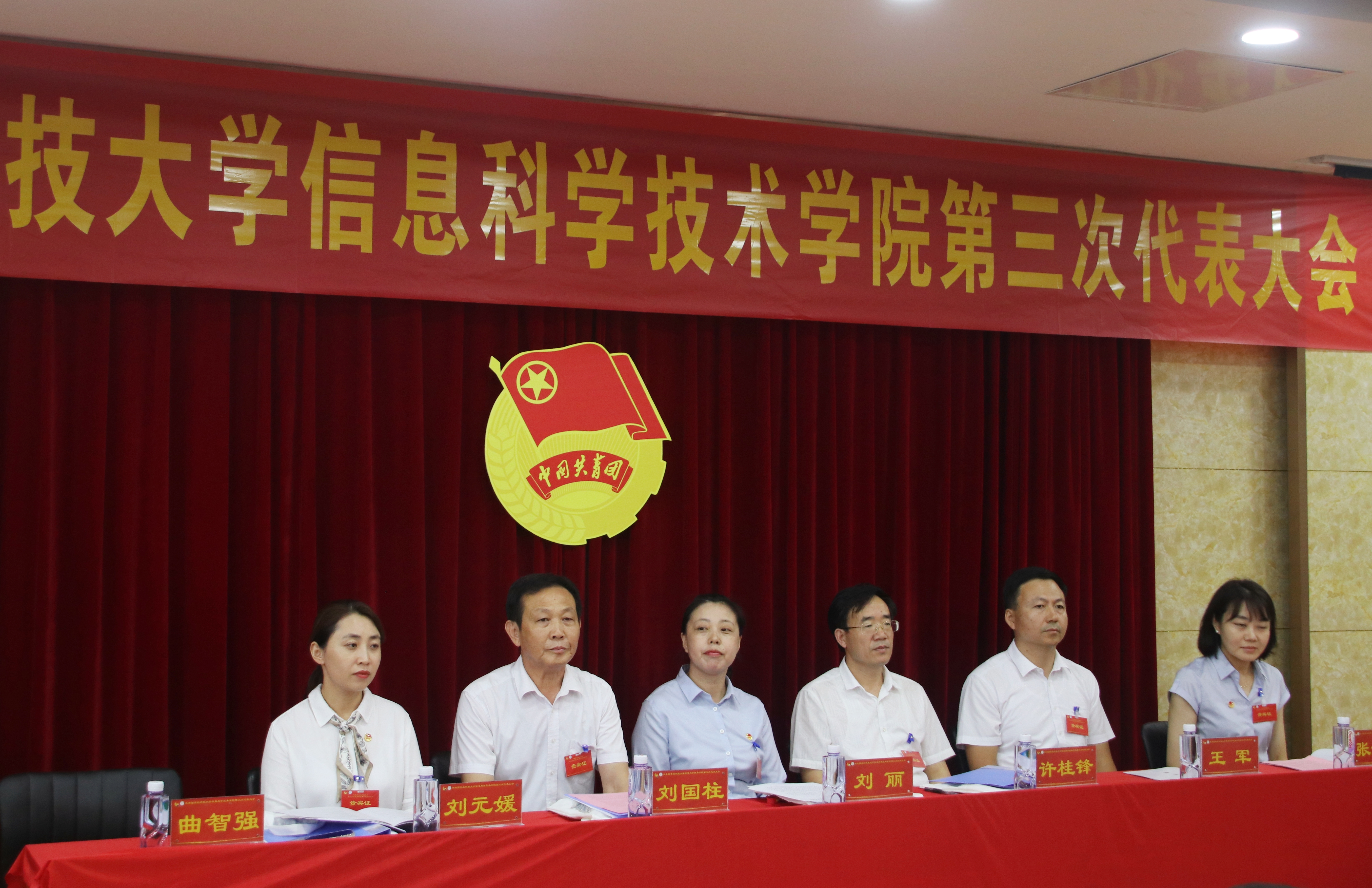9月19日下午,共青团766全讯白菜网信息科学技术学院第三次代表大会在崂山校区信息学院楼402报告厅隆重召开。校团委兼职副书记刘丽、学院党委书记许桂锋、院长刘国柱、学院党委副书记兼副院长王军、中德科技学院团委书记刘元媛、学科建设办公室主任张娉婷以及兄弟学院团委老师到会祝贺,全院110名教师及学生代表出席大会。会议由学院团委书记曲智强主持。