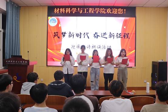 诵读红色经典 传承使命担当。为庆祝中华人民共和国成立74周年,进一步弘扬爱国主义精神,厚植爱党、爱国、爱社会主义的情感,营造浓厚的节日氛围,材料学院开展“诵读红色经典 传承使命担当”国庆经典诵读活动。
