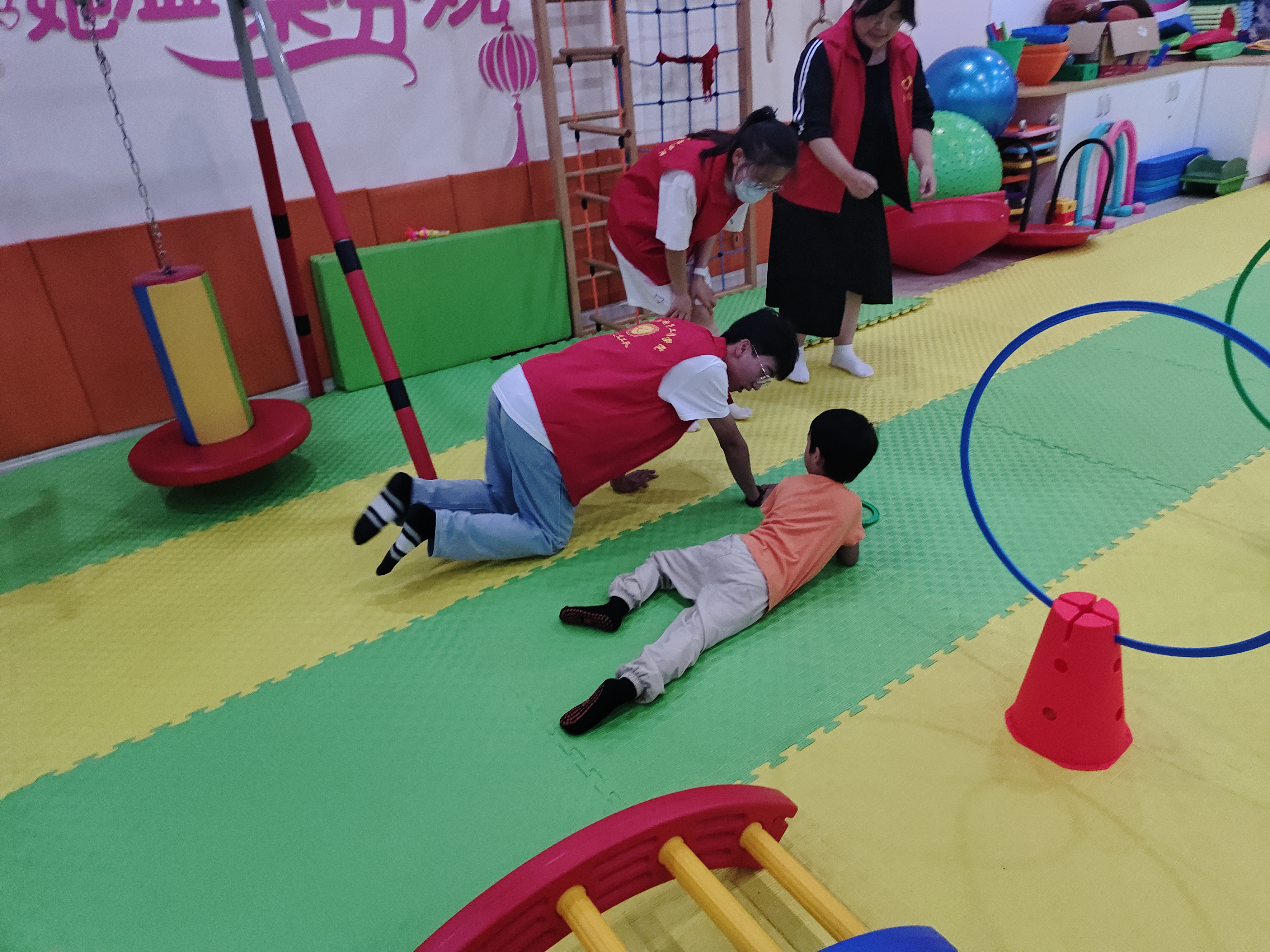 活动伊始,工作人员向同学们详细介绍了自闭症儿童这个特殊群体,带领同学们先后参观了中心医疗区、教学区和心理咨询中心等场所。活动过程中,志愿者们以助教的身份参与到课堂教学过程中,辅助孩子们完成老师在课程上设置的各项任务,带动孩子们更加积极地参与游戏。通过与孩子们的交流、学习和玩耍,既传递了爱心,也收获了孩子们天真烂漫的笑脸。
