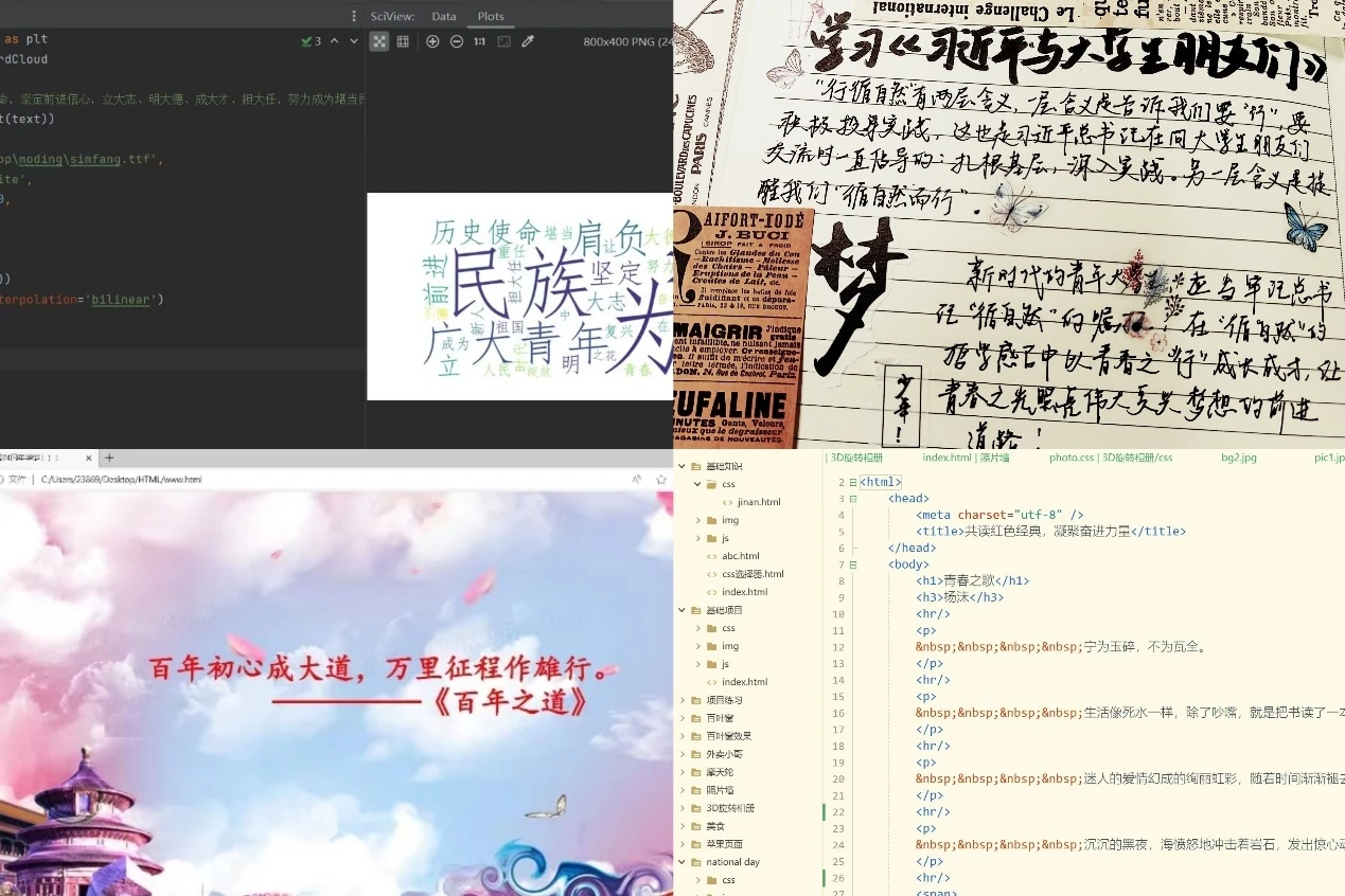 锦绣山河,华章不断。为激发同学们的爱党爱国热情,引导广大青年敢于有梦、勇于追梦、勤于圆梦,信息学院举办“山河披锦绣,盛世写华章”线上作品征集活动。同学们将家国情融入字里行间,或用华丽的辞藻,或有朴素真挚的语言为祖国编织一身彩霞,点燃新时代青年的爱国魂。