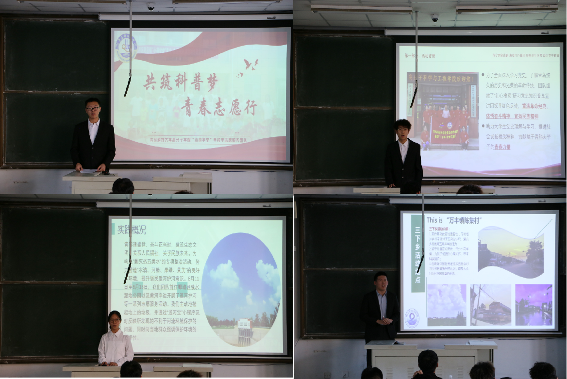 交流会上,27支实践团代表逐一上场,分别聚焦红色基因传承、理论普及宣讲、发展成就观察、服务党政大局、就业创业实践、基层志愿服务等实践类型,详细介绍了暑期社会实践活动的开展过程及成果,分享了实践收获和感悟,对暑期内的社会实践工作进行了细致的总结,答辩过程中同学们彰显出了“青科学子”的青春风采,展现了青年的责任与担当。