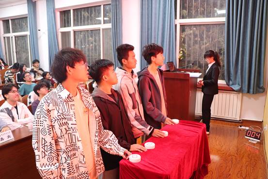 第二轮为抢答活动,这不仅仅考验了选手的知识水平和思维能力,还要求选手具备快速反应的能力。现场气氛热烈紧张,晋级的选手全神贯注,争先恐后按下抢答器,台下的观众也热情高涨,为他们鼓掌、加油。在刺激的抢答环节结束后,张健同学获得一等奖,于逍遥同学获得二等奖,倪嘉帅、胡麒同学获得三等奖。