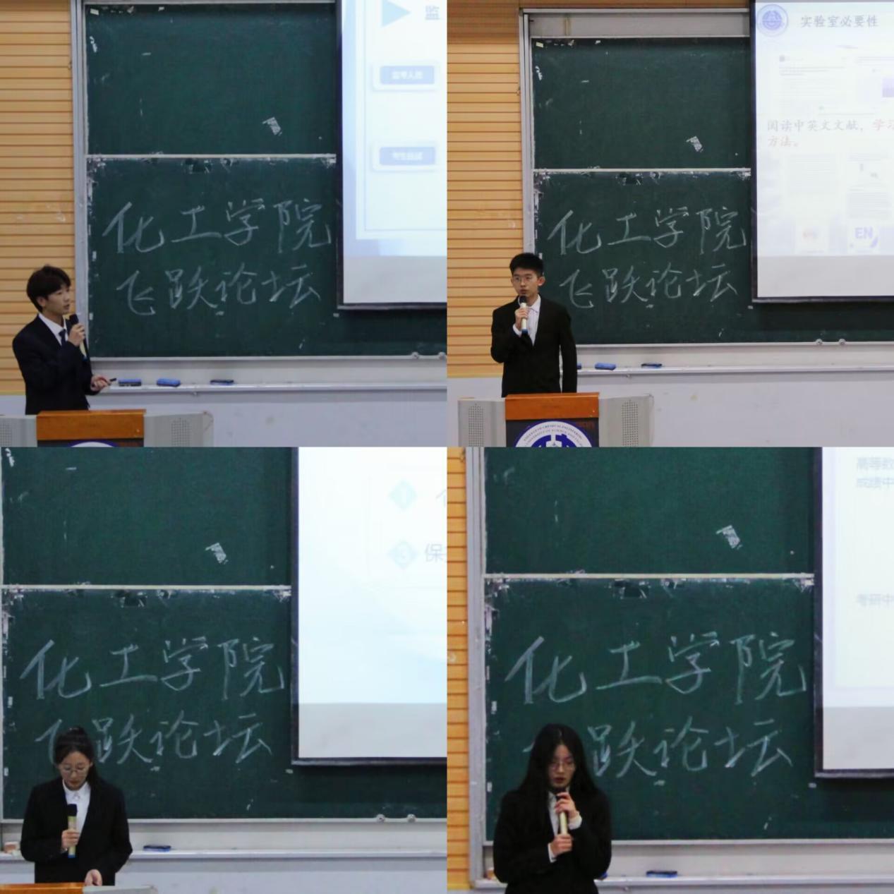 11月11日晚,由化工学院学生会主办的化工学院2023年飞跃论坛之“学创行”学习经验交流会在彤程楼101室举行。化工学院学生会骨干参加此次活动。