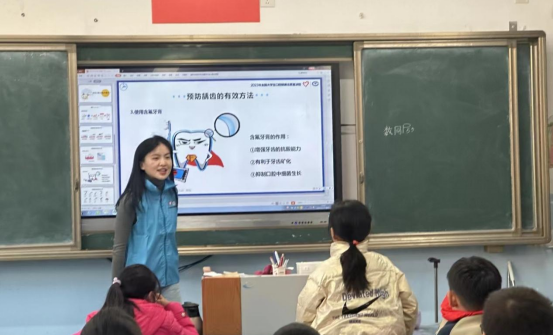 为引导青年学生掌握口腔健康知识,形成良好的口腔健康行为,2023年11月30日,化学院“化育山海大课堂”志愿服务队于联合青岛市市北区洛阳路第二小学四年级3班开展口腔健康志愿宣讲活动。