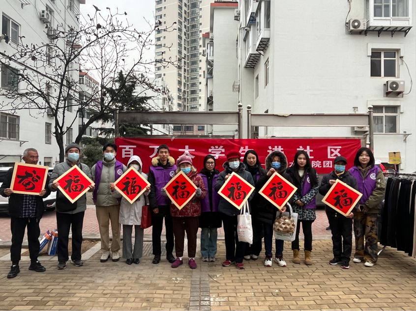活动伊始,志愿者们为社区居民送上艺院学子的手写”福“字,艺院一张张福字,居民一份份笑容,传递了艺院师生的浓浓心意与祝福。