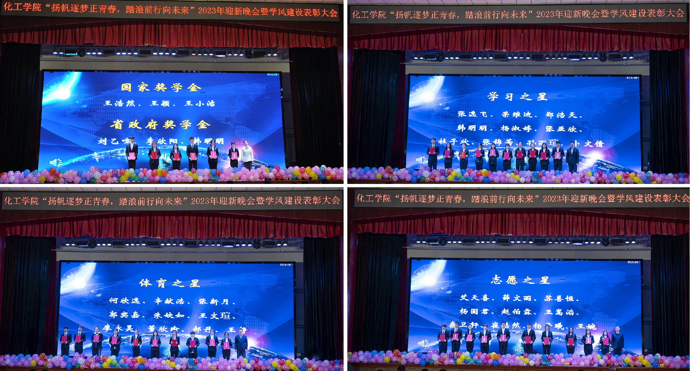 12月14晚,化工学院"扬帆逐梦正青春,踏浪前行向未来"2023年迎新晚会暨学风建设表彰大会在四方校区西礼堂举办。学院党政领导、班主任、辅导员和23级新生齐聚一堂,共同观看晚会。晚会线上线下同步直播。