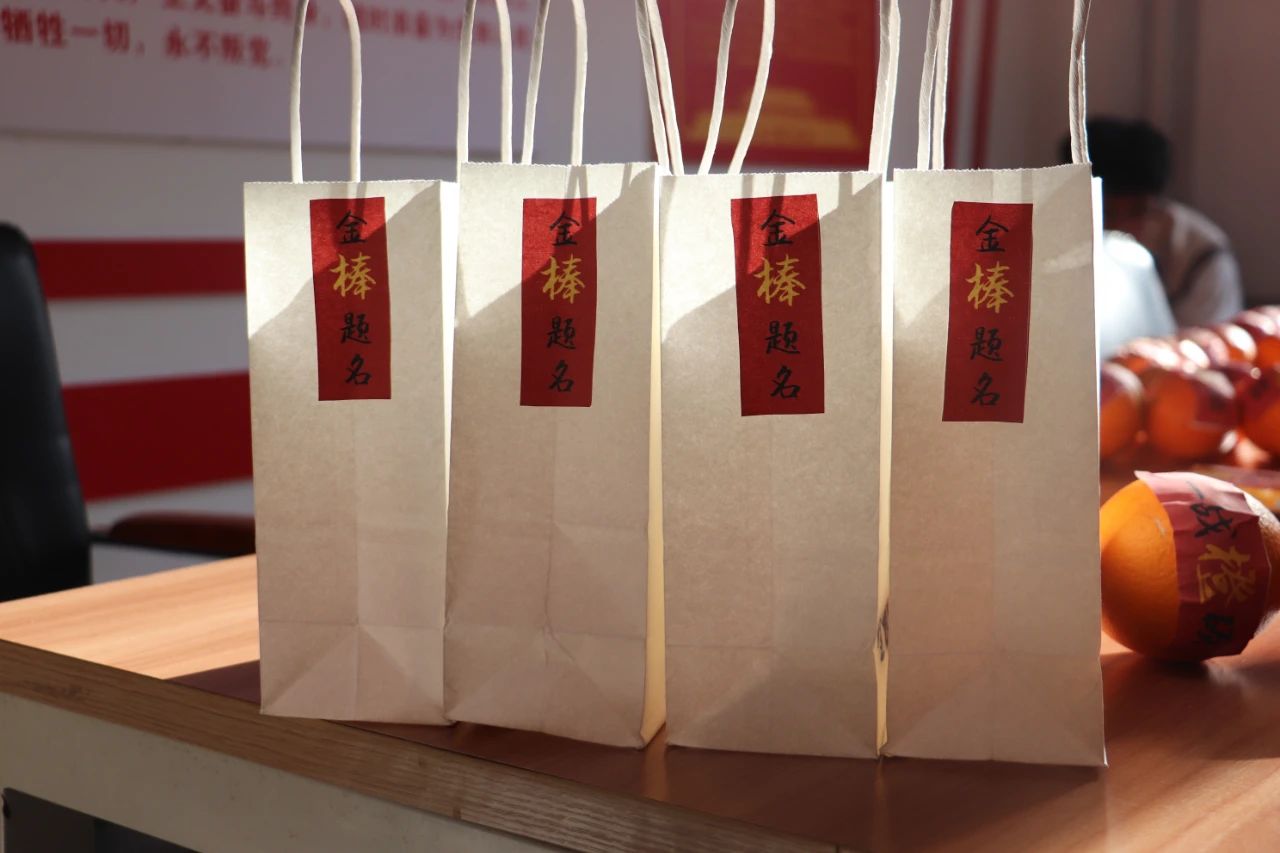 学院精心设计“爱心加油包”,以考研学子最期待的礼物“录取通知书”为出发点,用心设计“‘你’录取通知书”,‘你’谐音“拟”,讨好彩头,增添信心,并细心设计“男生版”“女生版”,大四年级辅导员巩金梦老师为每一位考研学子手写“录取”姓名,博得考研学生暖心欢喜。在每一颗橙子上,粘贴“一战‘橙’硕”红色纸贴,棒棒糖上也贴有“金‘棒’题名”字样。此外,学院也为考研学生定制了“大获全胜”防护口罩,调整考研学子紧张心态,祝福大家成功上岸!