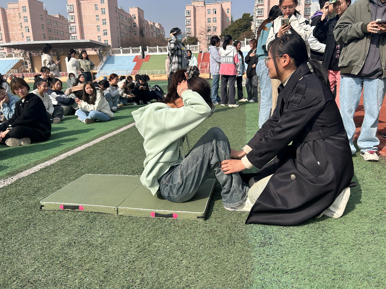 “青春力量”挑战赛分为引体向上和仰卧起坐两个组别,男生引体向上五人一组,每人一分钟,接力挑战;女生仰卧起坐五人一组,每人一分钟,接力挑战。比赛开始前,参赛选手们提前到达比赛现场进行签到热身,有序等待比赛开始。引体向上比赛开始后,参赛选手紧握横杆,用力向上拉起,每一个动作都彰显着肌肉的韧性和力量的释放。女生组的仰卧起坐依旧精彩纷呈,参赛选手双手环抱住头部,双脚并拢,膝盖弯曲,蓄势待发,用腰腹核心力量抬起上身,展现出健康美学。