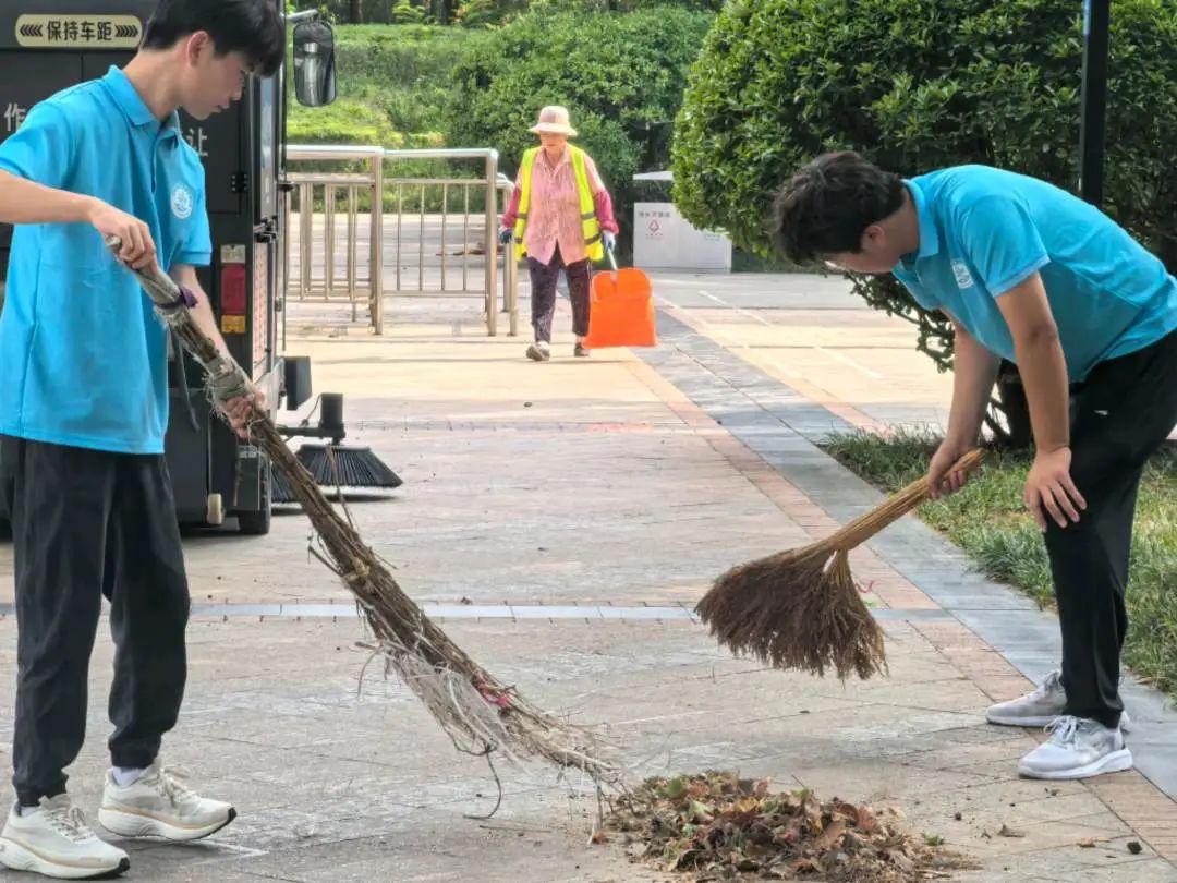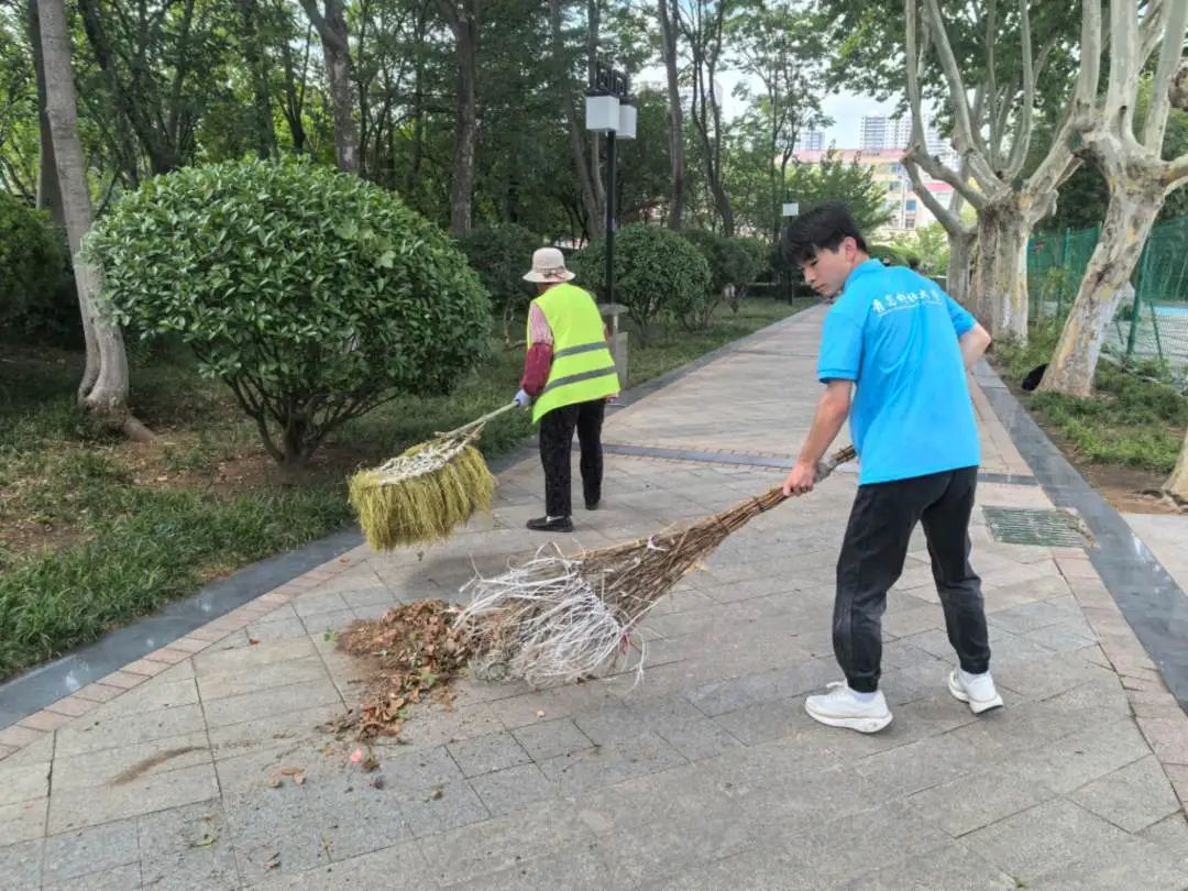 第三站,实践队前往临沂人民公园开展环保志愿服务活动,成员结合公园垃圾分类日常工作,与公园环卫工人合作,手持扫帚,仔细清理公园角落的落叶、碎石,获得工人的一致好评,用实际行动维护了公园的干净整洁形象。
