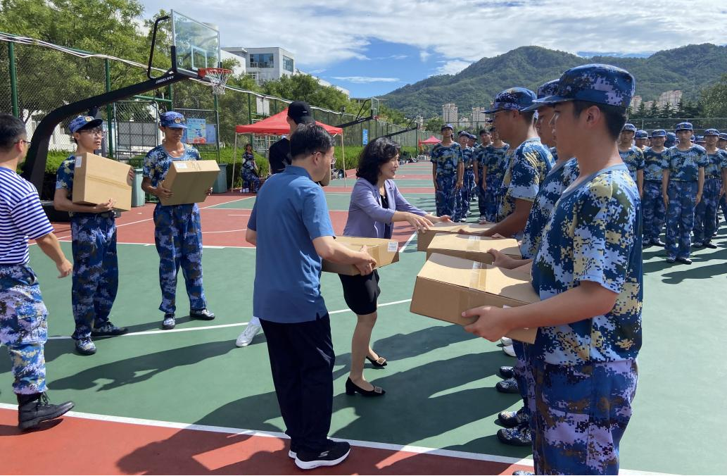 王景景代表学院向承训教官表示诚挚的感谢,向全体参训新生表示慰问并向新生们致以中秋节问候。在详细了解新生参训期间的纪律、思想、身体和拉练情况的同时,高度肯定了新生们在训练场上展现出的积极昂扬的士气和坚持不懈的努力。鼓励新生们珍惜军训的时光,在军训中磨炼意志、锤炼精神、增强纪律品质、培养团队观念。