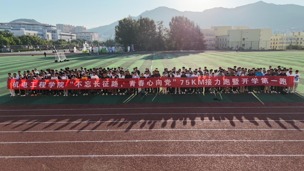 为深入贯彻落实学校“爱体育、兴科大”体育综合改革,有效激发青年学生“健康生活、快乐学习”的良好习惯,向祖国75周岁生日献礼,9月24日,机电工程学院团委开展“不忘长征路、青春心向党”75km接力跑。学院团委辅导员老师、各年级三百余名同学报名参加活动。