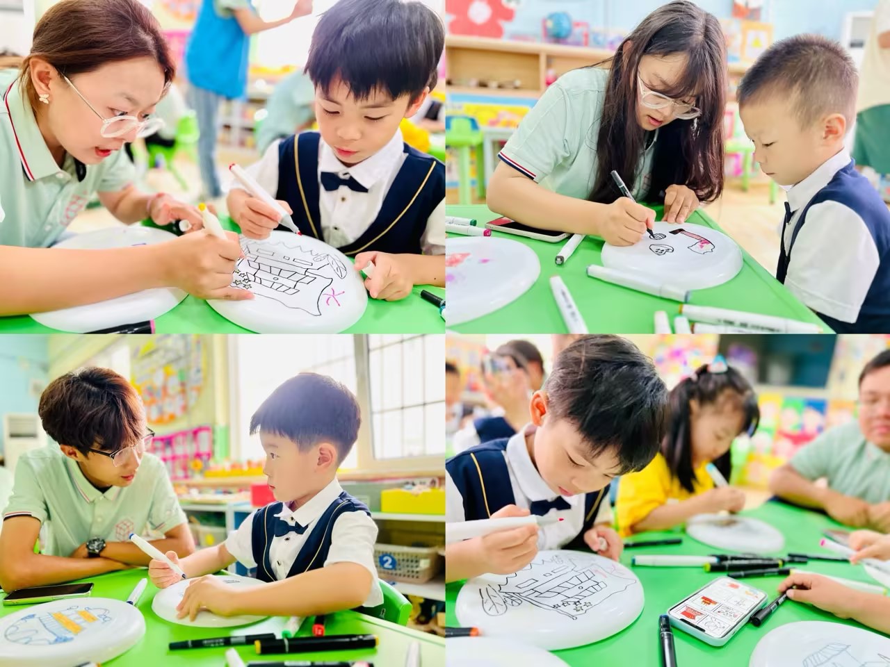 活动现场,生工学子为每位小朋友分发了空白飞盘以及绘画彩笔,让小朋友们发挥想象力,以空白飞盘为载体作画,发挥小朋友天马行空的想象力,绘制国庆元素,创造出属于自己的国庆限定飞盘。参加活动的小朋友选择了不同的图案,将自己对祖国的热爱以独特的方式呈现在了飞盘上。制作过程小朋友们全神贯注,生工学子在旁协助,大家一起为原本空白飞盘增添上丰富的元素。随后带领小朋友在草坪上体验了飞盘放飞活动,让大家感受到了体育运动的快乐。