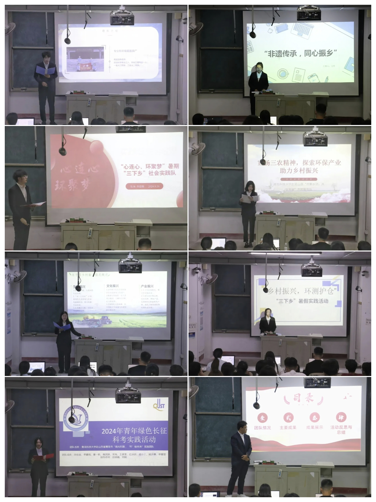 为深入学习宣传贯彻习近平新时代中国特色社会主义思想和党的二十大精神,进一步深化我校青年学生“返家乡”社会实践活动,引导广大青年学生充分感受家乡变化,在家乡的热土上、在实践的课堂中受教育、长才干、作贡献,9月26日,环境学院团委在2教215开展“实践归来话收获”暑期“三下乡”社会实践成果汇报会。