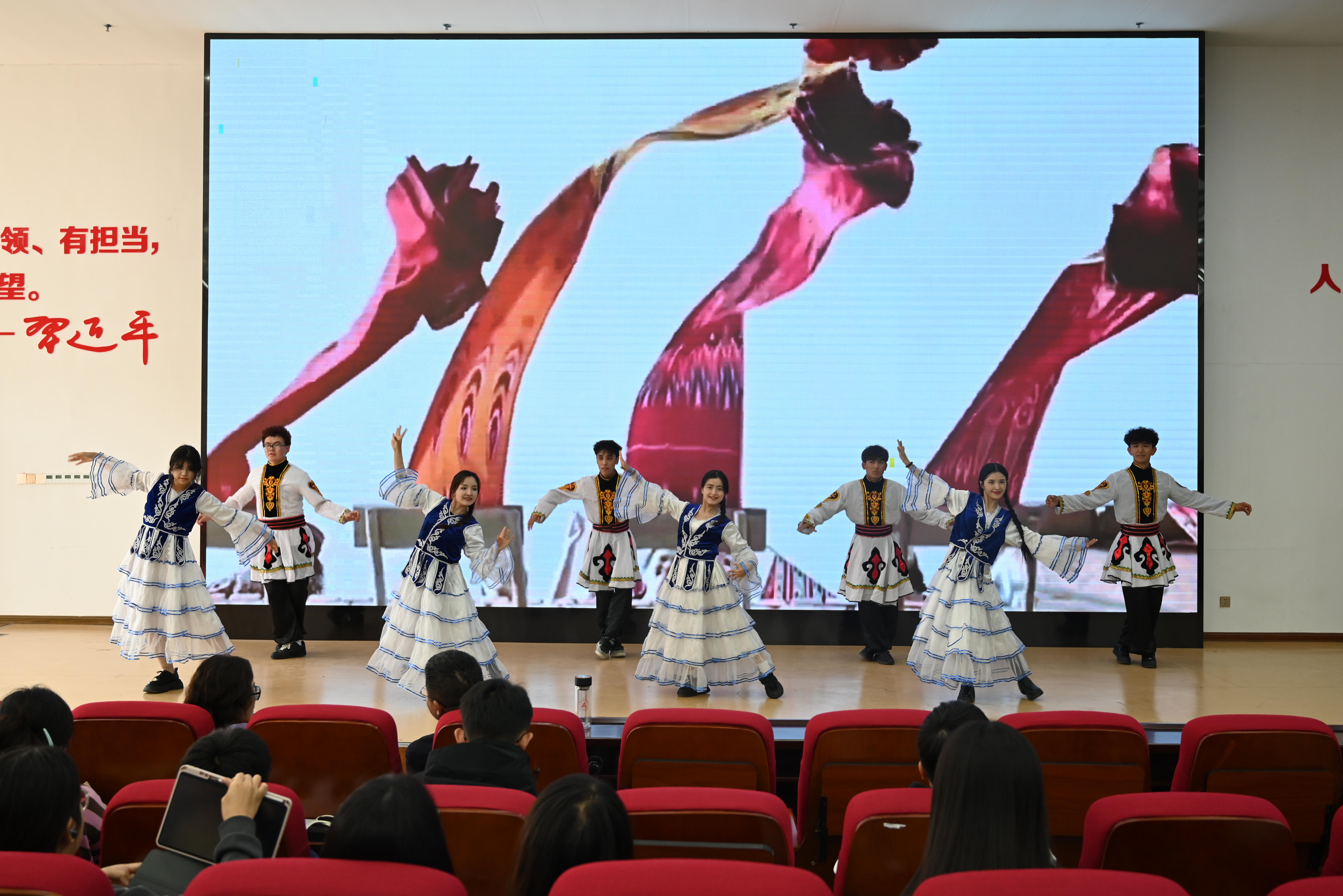 本次活动由艺术学院团委表演团队带来了《长城谣》《黄河颂》《绒花》等10首红色歌曲和新疆顶碗舞、哈萨克舞等少数民族舞蹈,以沉浸式红色音乐赏析的形式,带领青年学生重温中国共产党百余年来波澜壮阔的光辉历程。演出人员倾情演绎,用悠扬婉转的旋律和优美灵动的舞姿传递出了革命岁月的筚路蓝缕,传递出了对党的热爱与感激,传递出了坚守真理、担当使命的崇高信仰。