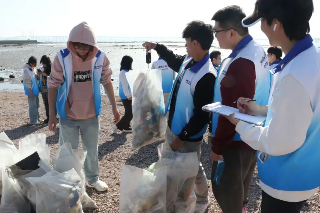 清理结束后,东大山海滩工作人员为同学们讲解了垃圾分类知识,带领他们将垃圾分类与称重。经称重,此次清理的垃圾共计49.05kg,其中塑料垃圾最多,玻璃垃圾次之。团员青年们亲眼见证了自己辛勤付出所取得的成效,他们表示,将积极倡导环保生活方式,为保护地球可持续发展贡献力量。