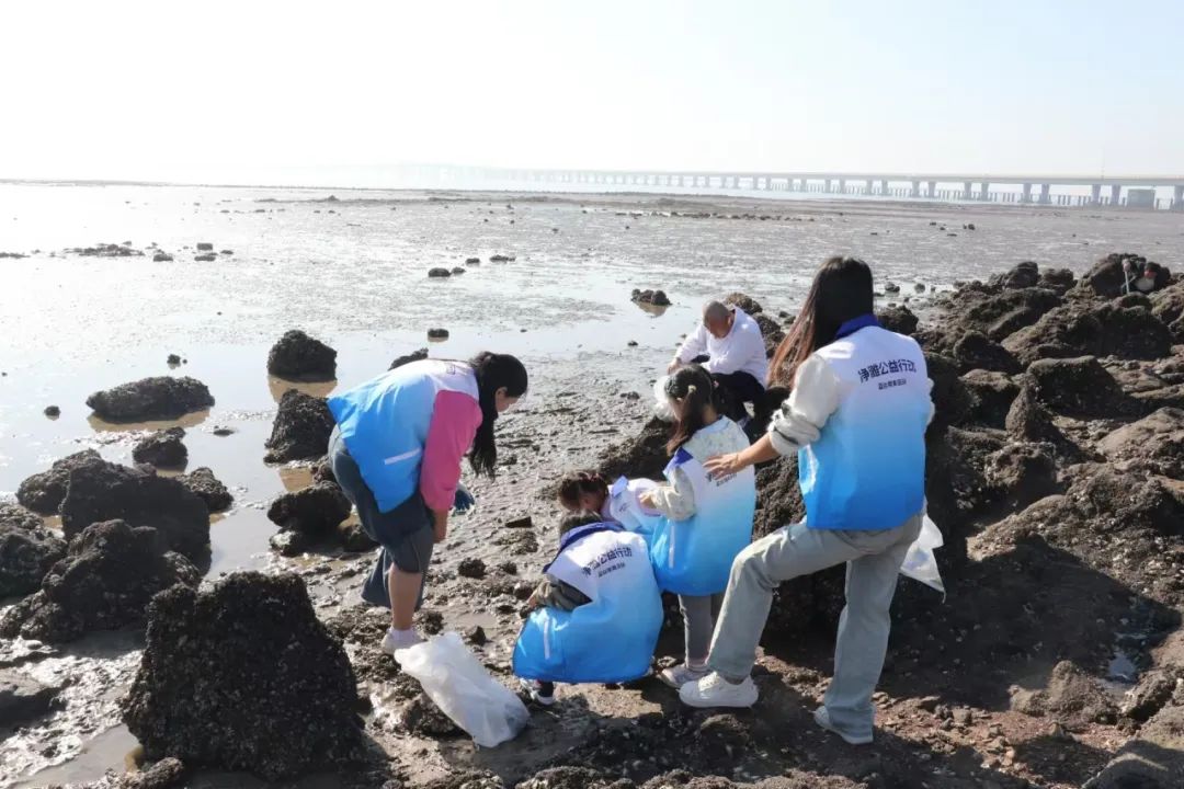 团员青年们齐心协力、分工协作、戴上手套、拿起工具,进行海滩垃圾清理工作,经过数小时不懈努力,海滩上的垃圾一扫而空。