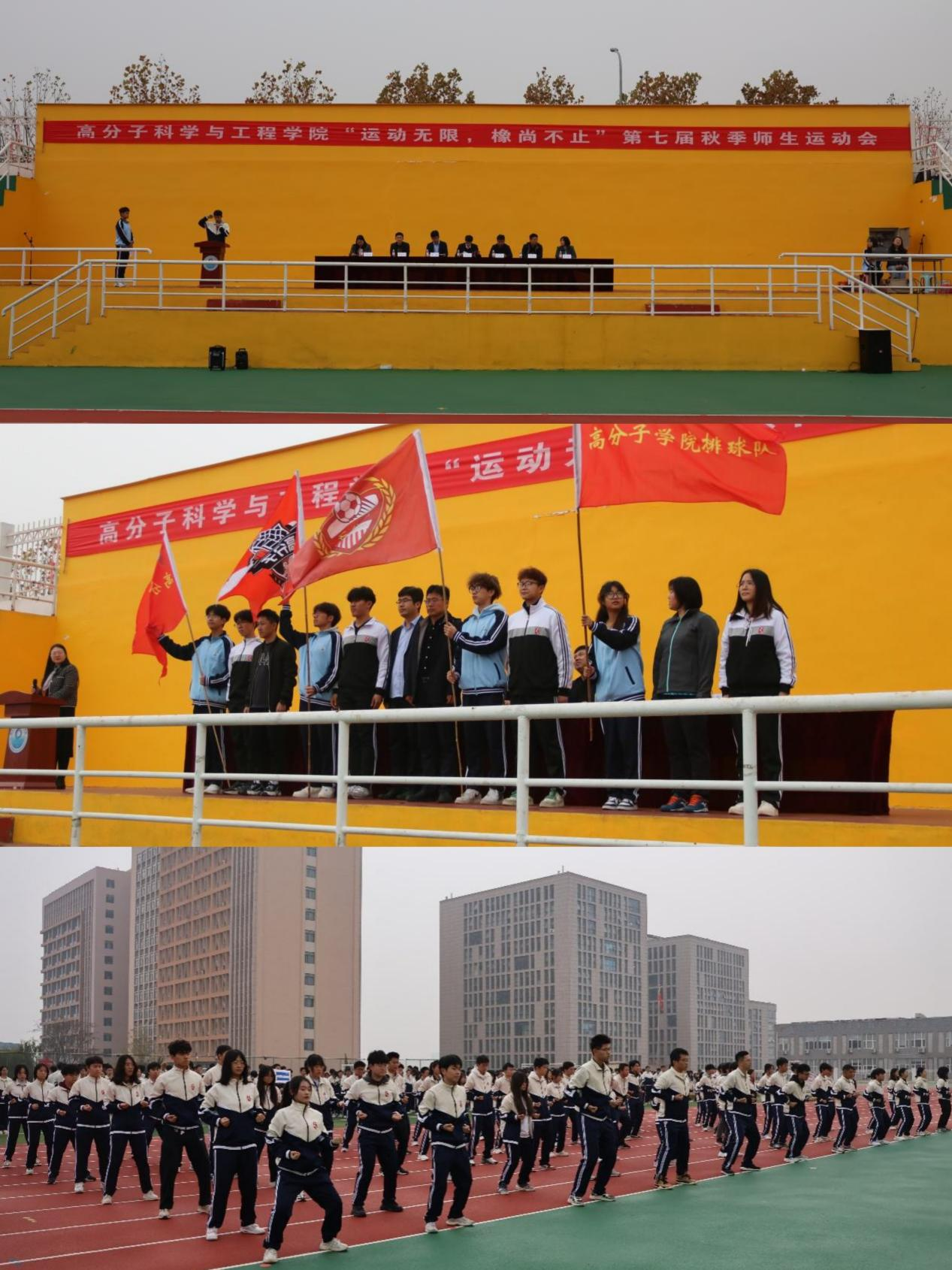 11月16日上午,高分子学院“运动无限,橡尚不止”第七届秋季师生运动会在东山操场成功举办。学院党委书记宣宗伟、副院长王庆富、副院长孙举涛、副院长刘恒、党委副书记兼副院长贾明明、工会副主席陈冬梅以及教职工代表出席本次开幕式。开幕式仪式由高分子学院团委书记兼学工办主任刘妍君主持。
