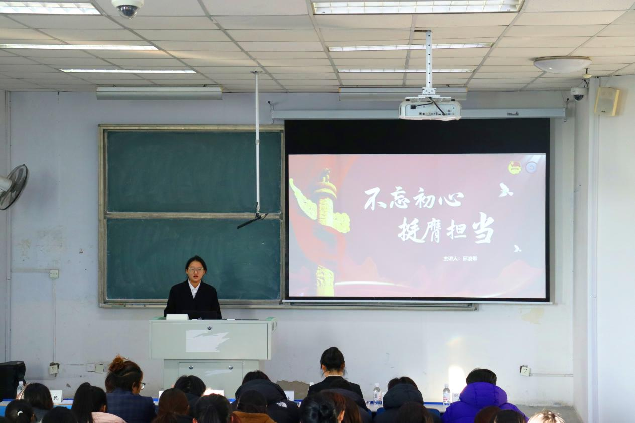 第十四届“挑战杯”中国大学生创业计划竞赛全国总决赛银奖获得者、编辑221班邱凌希以“不忘初心,挺膺担当”为主题,为团校学员带来团课第一讲,号召全体团校学员,心怀“国之大者”,在青春的赛道上奋力跑出最好的成绩。