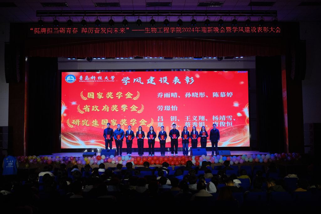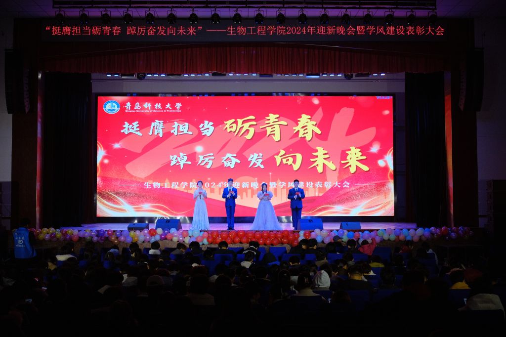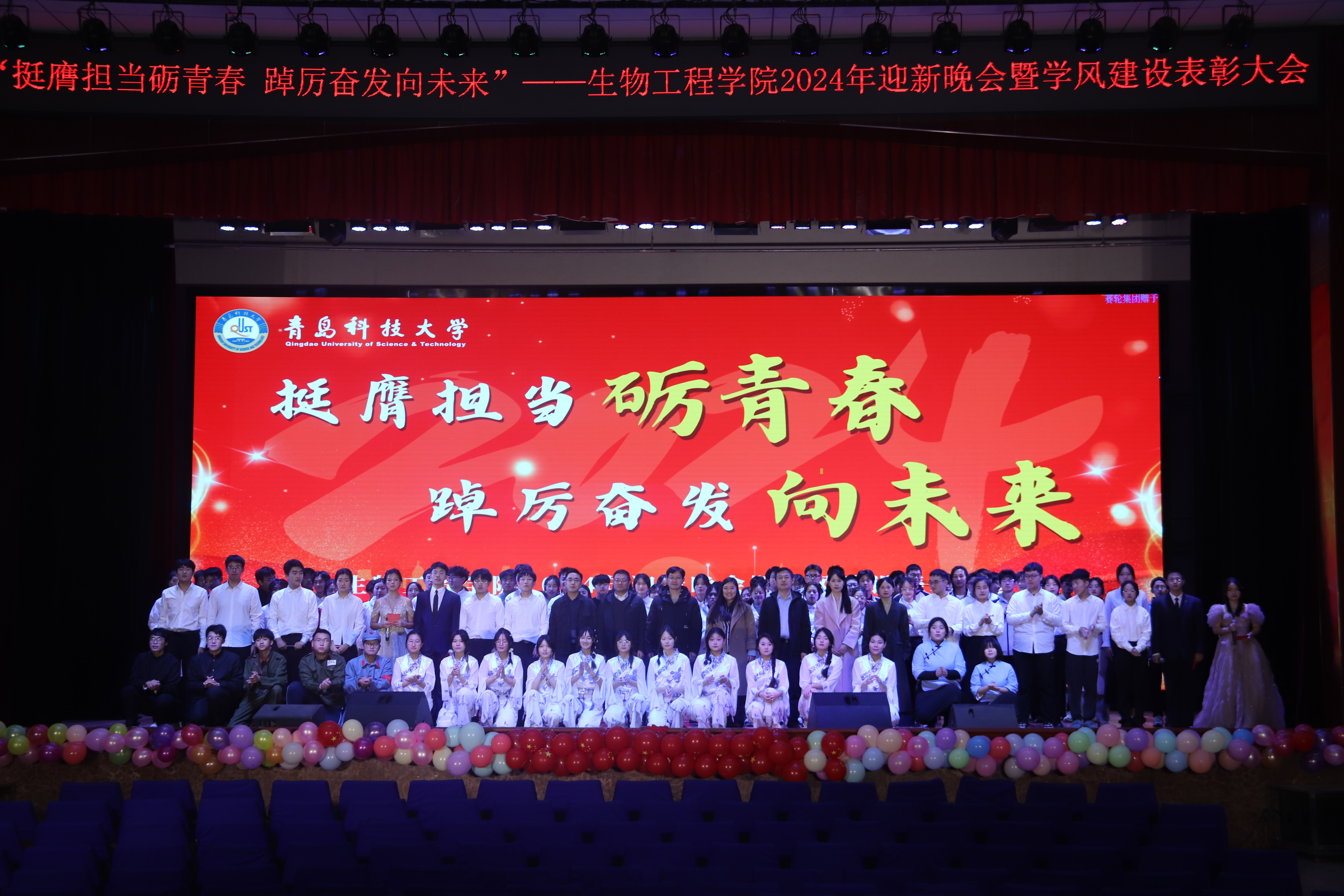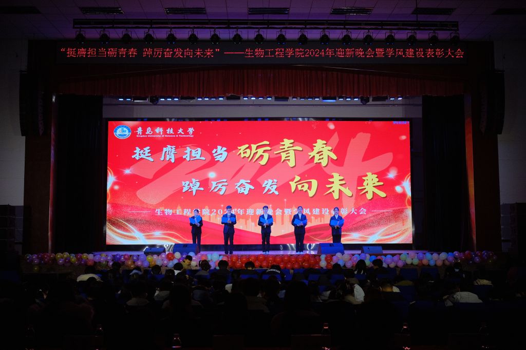 为进一步丰富校园文化活动,激励广大青年勇担时代之责,加强学院学风建设与文化建设,11月29日,生物工程学院于四方校区西礼堂举办“挺膺担当砺青春,踔厉奋发向未来”2024年迎新晚会暨学风建设表彰大会。党委学生工作部副部长李春家、校团委兼职副书记王邑、生物工程学院党委书记周宪锋、党委副书记兼副院长刘浩、副院长李昉、副院长孟祥民、学院全体辅导员和2024级全体新生出席本次晚会。