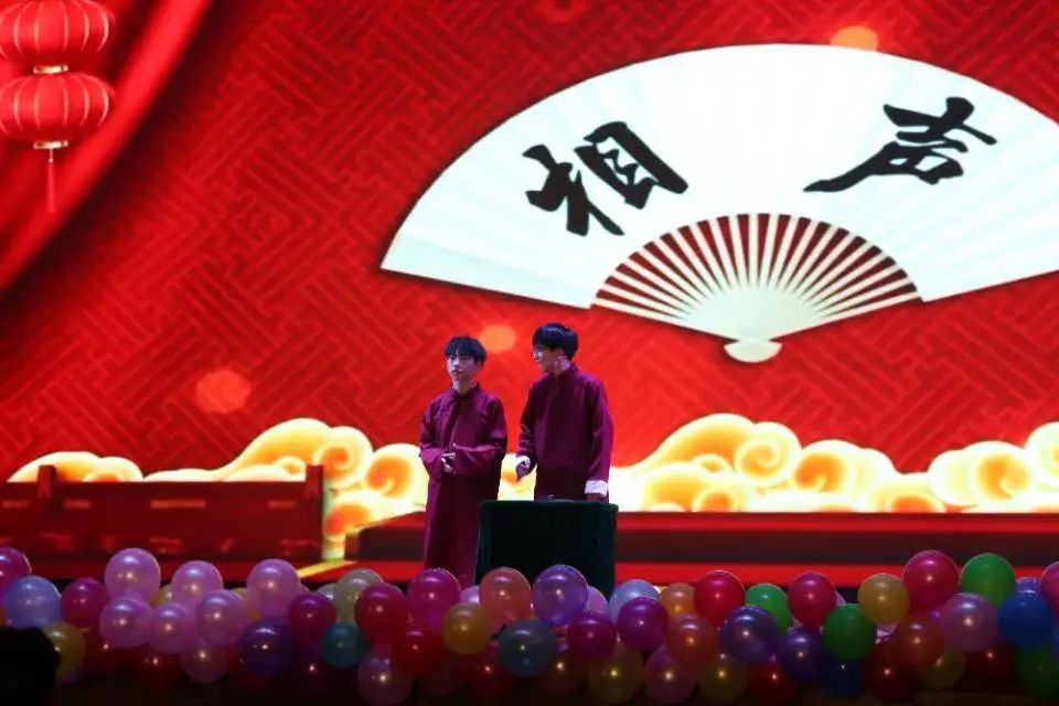 相声《相声新时代》用幽默的语言、逗趣的表演让晚会充满了欢声笑语。