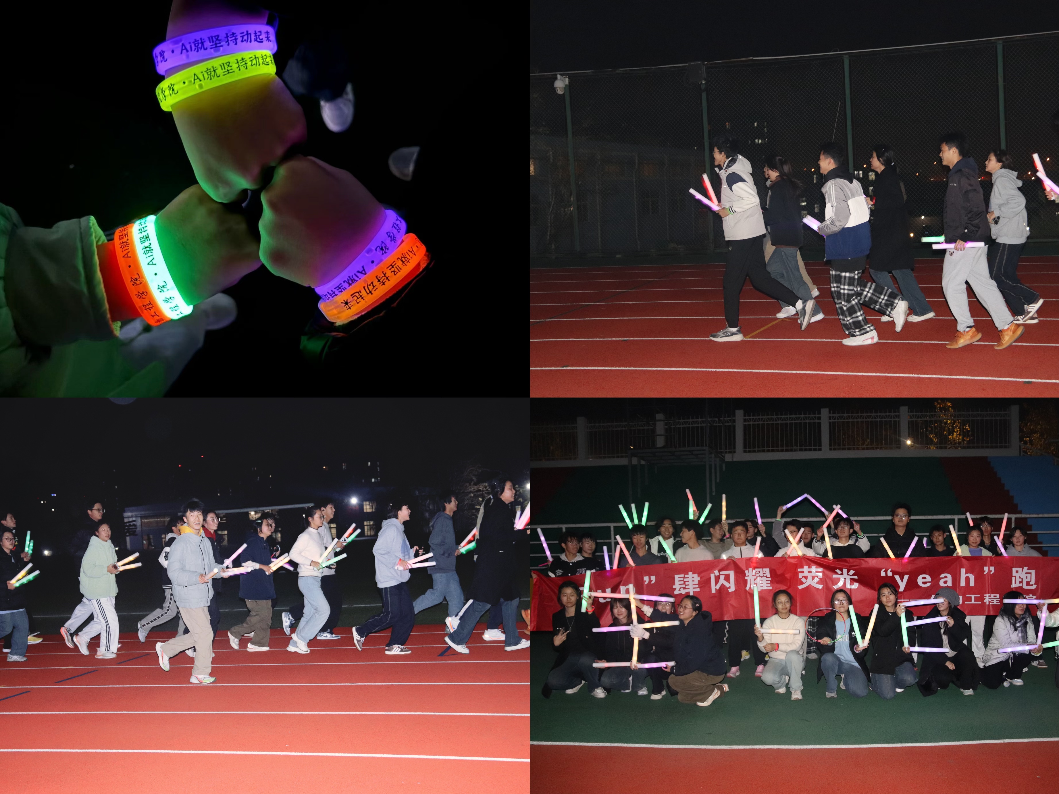 为践行“爱体育,兴科大”的精神,进一步促进大学生的身心健康和全面发展,生物工程学院团委在东山操场成功举办了“‘Fun’肆闪耀 荧光‘yeah’跑”活动,活动以“AI就坚持动起来”为理念,生工学子手持荧光棒,在夜色中奔跑,点燃内心的激情,释放青春的活力。通过在夜跑中身体力行的独特方式,使同学们深刻领会先辈们为国家和民族挺身而出的精神品质,激励当代大学生在运动中铭记历史,让爱国精神在新时代焕发出新魅力!