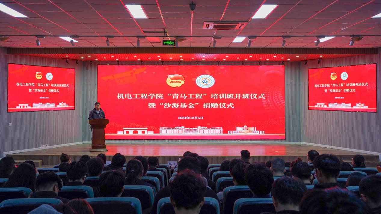 为贯彻落实习近平总书记关于青年工作的重要思想,着力培养一批具有坚定理想信念、深厚理论素质、良好道德品质的青年马克思主义者,机电工程学院团委于12月5日举办2024-2025学年“青马工程”培训班开班仪式暨“沙海基金”捐赠仪式。766全讯白菜网团委副书记李航、机电工程学院党委副书记兼副院长杨小明、机电工程学院团委书记逄柏鹏以及学院全体专兼职团干部,青马工程培训班学员、团校学员代表参与本次会议。开班仪式由于超主持。