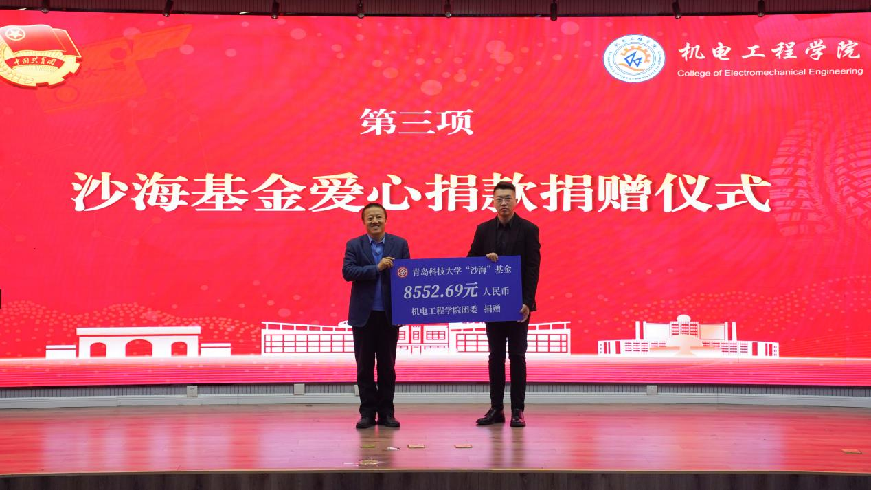 “沙海基金”爱心捐款捐赠仪式环节,由院党委副书记兼副院长杨小明代表学院向校团委副书记李航进行捐赠。766全讯白菜网沙海基金成立于2014年,为支教服务地的教育事业发展和研究生支教团工作提供了重要保障。在沙海助学专项活动中,机电工程学院的老师和同学们用自己的实际行动支援西部建设,为西部乡村教育事业发展贡献自己的力量,推动西部教育事业蓬勃发展。