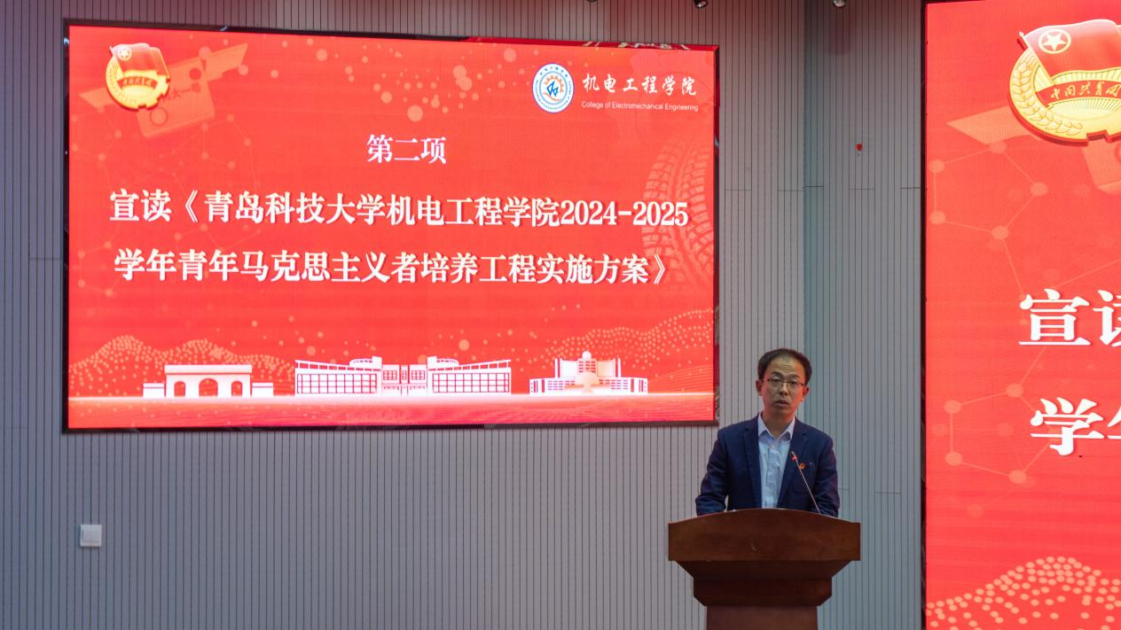 仪式在庄严的国歌声中拉开帷幕。院团委书记逄柏鹏宣读了《766全讯白菜网机电工程学院2024-2025学年青年马克思主义者培养工程实施方案》,方案中指出,在本次青马工程理论课程的具体设置上充分体现了习近平新时代中国特色社会主义思想铸魂育人作用,关键是帮助青年学生进一步增强“四个意识”、坚定“四个自信”、做到“两个维护”,引导青年学生在“大思政课”中受教育、长才干、做贡献,坚定不移听党话、跟党走。