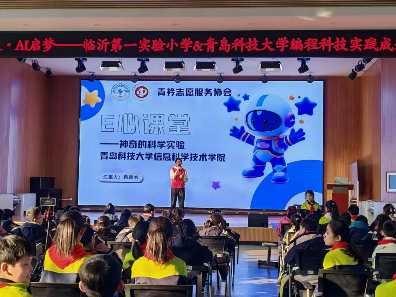 信息学院青衿志愿者协会联合临沂第一实验小学及社区开展公益实践活动,开展"E心课堂"系列活动,通过智能赛车、数字炸弹等趣味项目,开设编程公益课堂,让200余名小学生掌握基础编程技能。协会在学校、社区以科技展览形式展出遥控赛车等作品,指导孩子们与AI对话、学习使用AI解决兴趣问题,共同领略人工智能魅力。协会组建"红领巾宣讲团",带领中小学生走进东关社区、金苑社区,以情景剧、朗诵等形式进行多场沂蒙精神宣讲,以红色引擎驱动劳动育人,打造浸润式思政教育新场景。志愿服务事迹获得中国青年报、大众日报等媒体的报道。