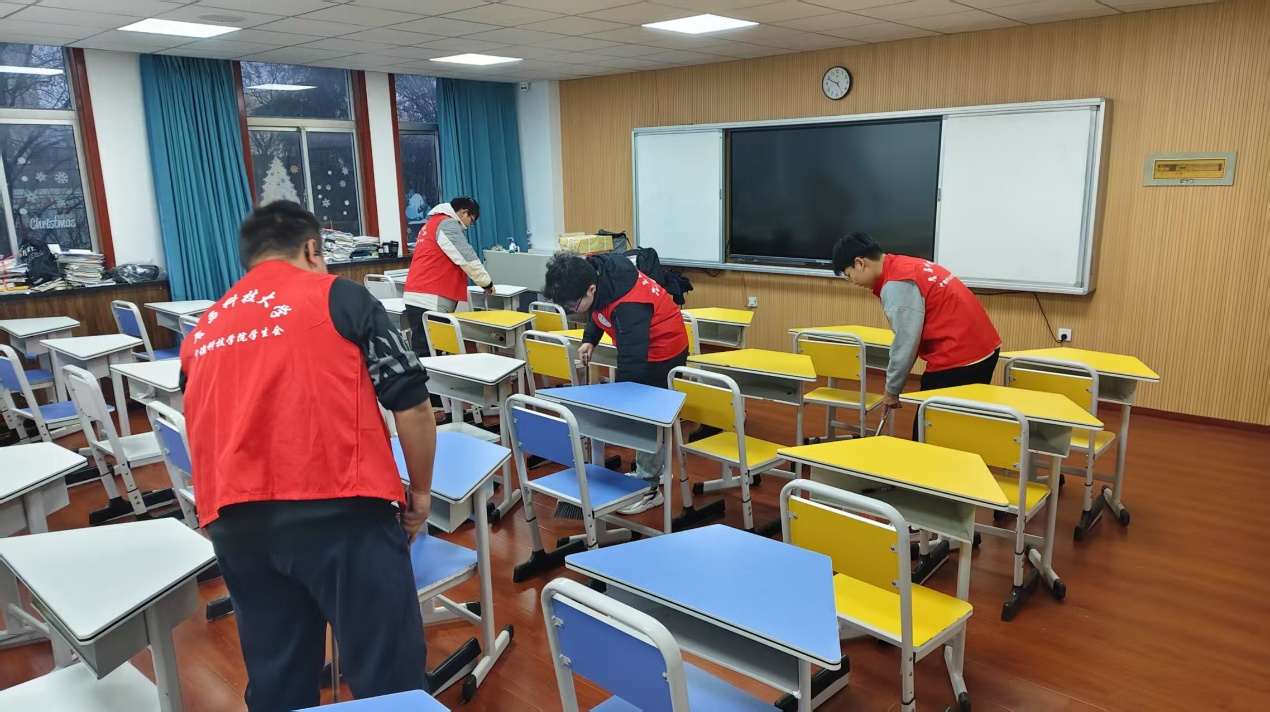 为营造更加整洁的教学环境,秉持“全心全意为同学服务”的初心,学院“德韵”志愿服务队开展了教室清扫活动。在清扫过程中,志愿者们一丝不苟,仔细清扫着地面的灰尘和杂物,认真擦拭黑板、讲台以及桌椅。他们以实际行动展现了新时代青年学子的良好风貌。在大家的共同努力下,教室变得窗明几净,为同学们提供了一个更加舒适、清新的学习空间。