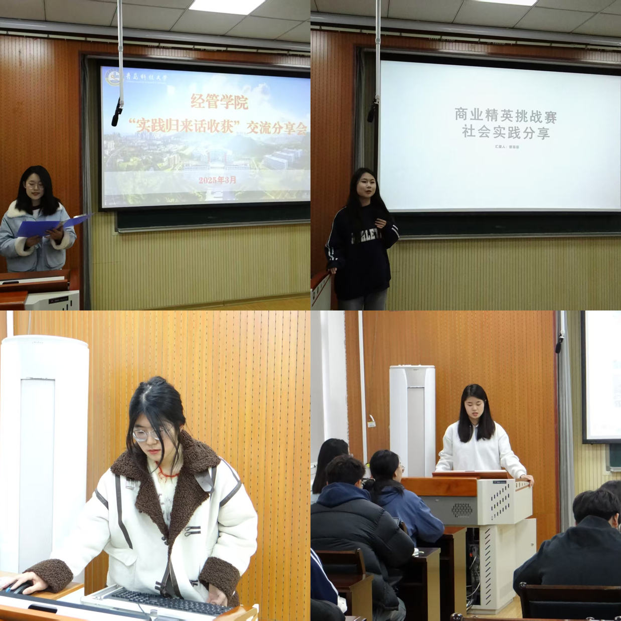 为深入学习宣传贯彻习近平新时代中国特色社会主义思想和党的二十大精神,激励青年学生坚定理想信念、投身社会实践,在社会“大思政课”中受教育、长才干、作贡献。3月11日下午,经管学院团委于经管楼419开展“实践归来话收获”社会实践交流分享会,23级、24 级学生代表参加会议。