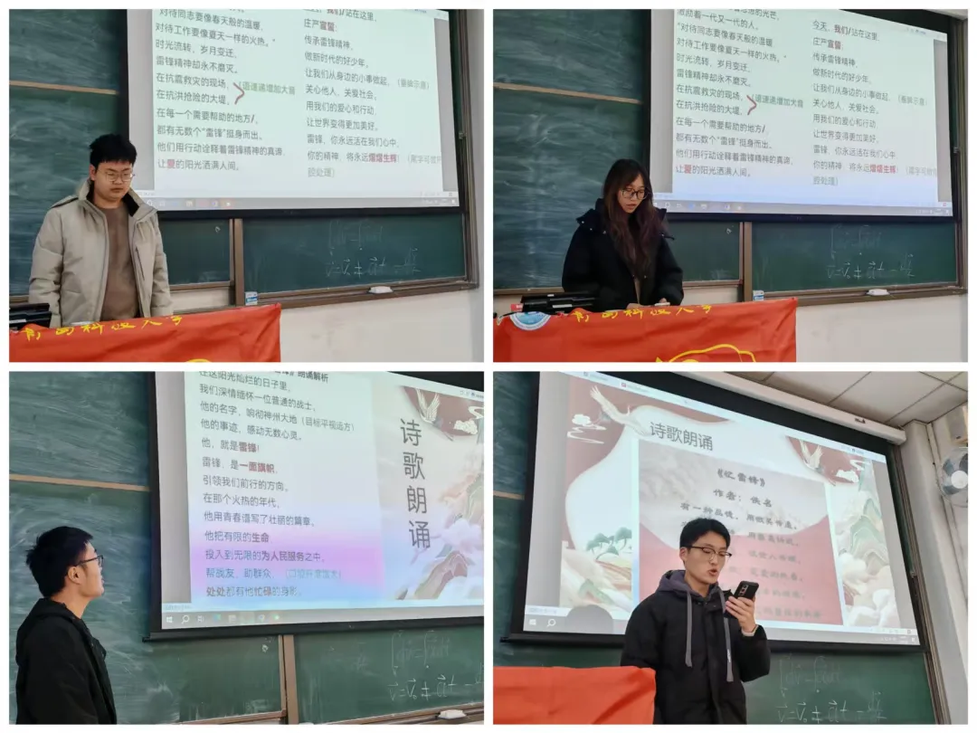 诗歌朗诵让雷锋精神以艺术形式走进青年心间,从抽象概念化为真切感悟。它不仅锻炼了青年学生的表达能力,更增强了团支部的凝聚力。后续青年学生们将不断在生活中践行雷锋精神,用实际行动续写新时代雷锋故事,让雷锋精神在青春岁月里持续闪耀。
