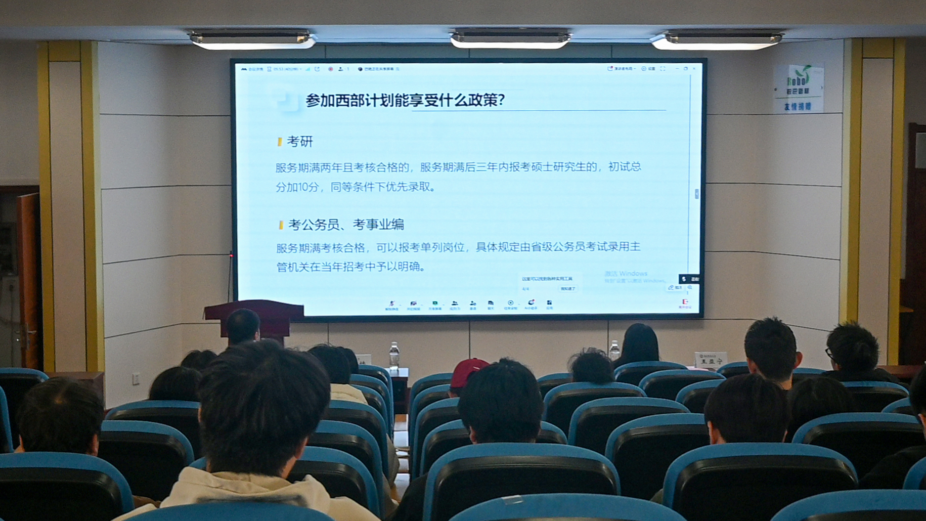 活动开始,“西部计划”学生代表巴艳结合自身完成服务期并上岸公务员的经历,讲述在西部服务过程中的收获与成长,为有意向参与西部计划实现个人价值的同学提供宝贵的参考。