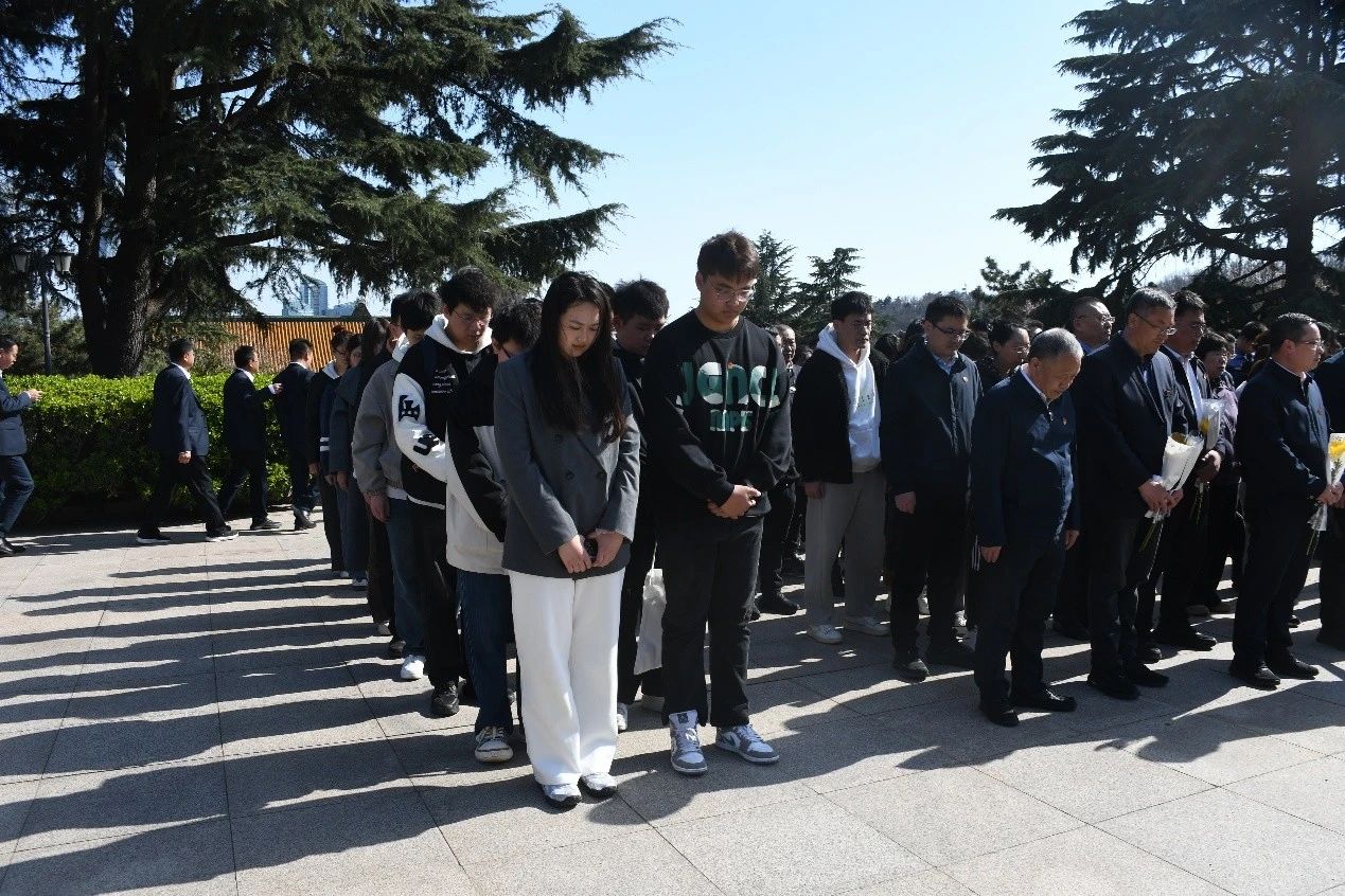 青山巍巍,默默诉说先烈们的英勇事迹;白菊朵朵,寄托着师生们无尽的哀思。下午3时整,雄浑激昂的国歌声骤然划破长空,回荡在烈士陵园的每一个角落。全体师生神情凝重,垂首默哀三分钟,以无声却饱含深情的仪式,穿越时空,叩响历史的回音壁,向为国家和人民奉献出宝贵生命的英烈们致以最崇高的敬意。