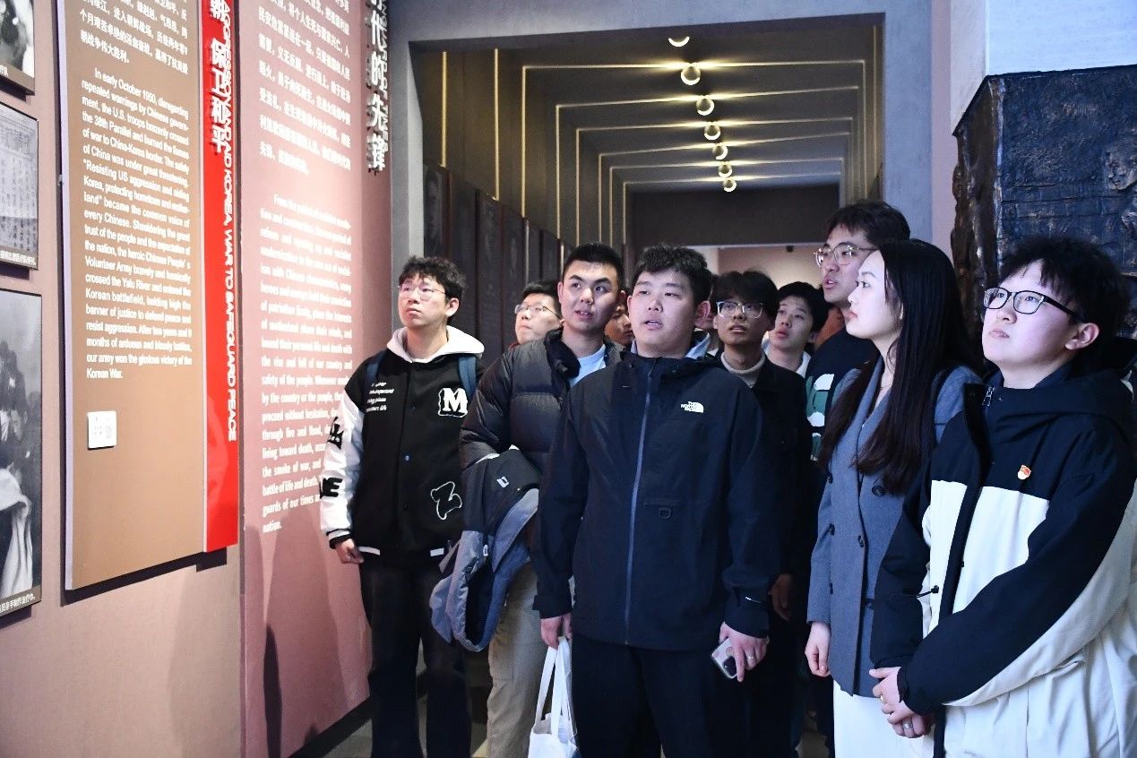 在革命烈士纪念馆内,泛黄的战地家书、斑驳的军功章、鲜活的场景复原,将师生带回烽火岁月。字迹模糊的家书记录着“捐躯赴国难,视死忽如归”的赤子丹心,锈迹斑驳的勋章见证着血火淬炼的荣光,逼真的战场复原场景再现了先烈们舍生忘死的壮烈画面。通过珍贵的历史资料,师生深刻体悟到革命先烈为国为民的初心与担当。