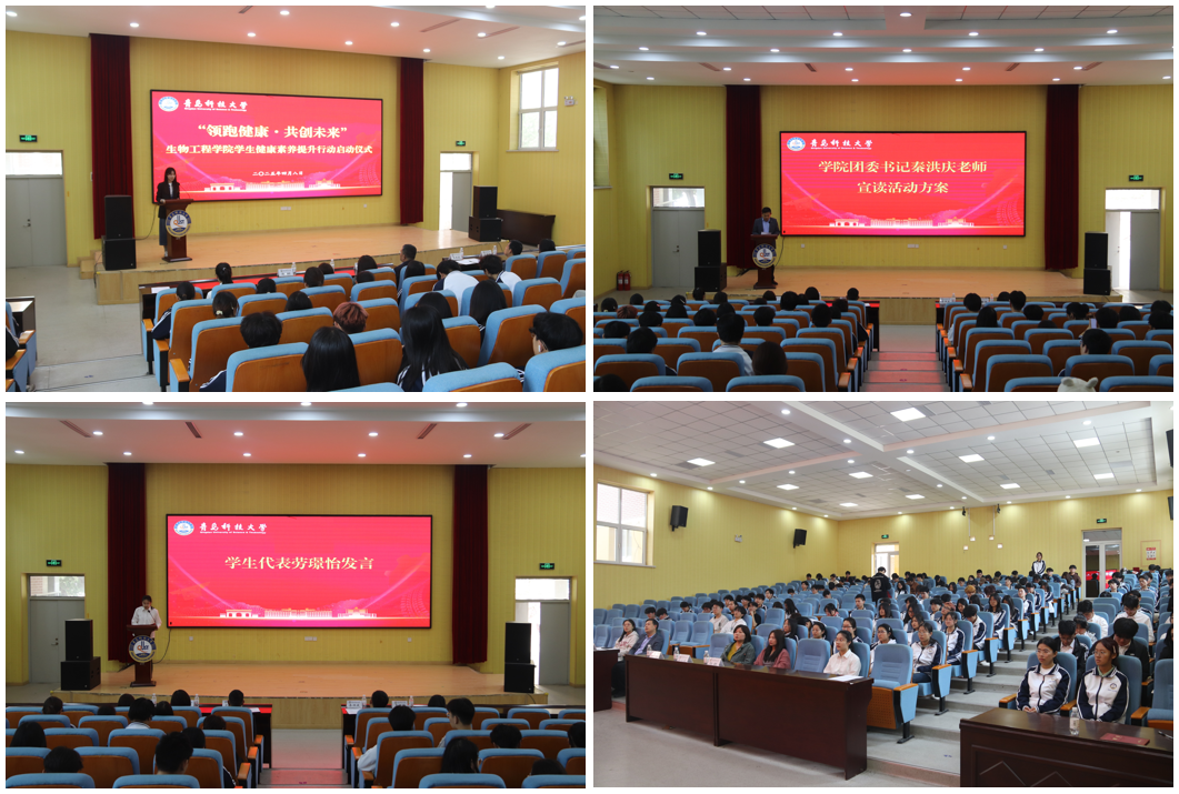 为深入贯彻习近平总书记关于健康中国建设的重要论述,落实国家体重管理年工作部署,推动学生全面发展与健康生活深度融合,实现全员全过程全方位全环境立德树人,4月8日下午,生物工程学院团委在尚舜报告厅举行“领跑健康,共创未来”学生健康素养提升行动启动仪式,校医院纪永丽医生、学院党委副书记刘浩、学院团委书记秦洪庆及团委全体老师、学生代表参加启动仪式,仪式由学院团委副书记刘金岭主持。