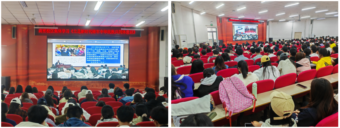 为深入贯彻落实习近平总书记关于民族工作的重要论述精神,进一步强化师生铸牢中华民族共同体意识的思想自觉和行动自觉,2025年4月11日高密校区团委于通德会堂开展《立足新时代铸牢中华民族共同体意识》直播课程专题学习活动,校区青年学生及全体辅导员老师共400余人参加了本次活动。