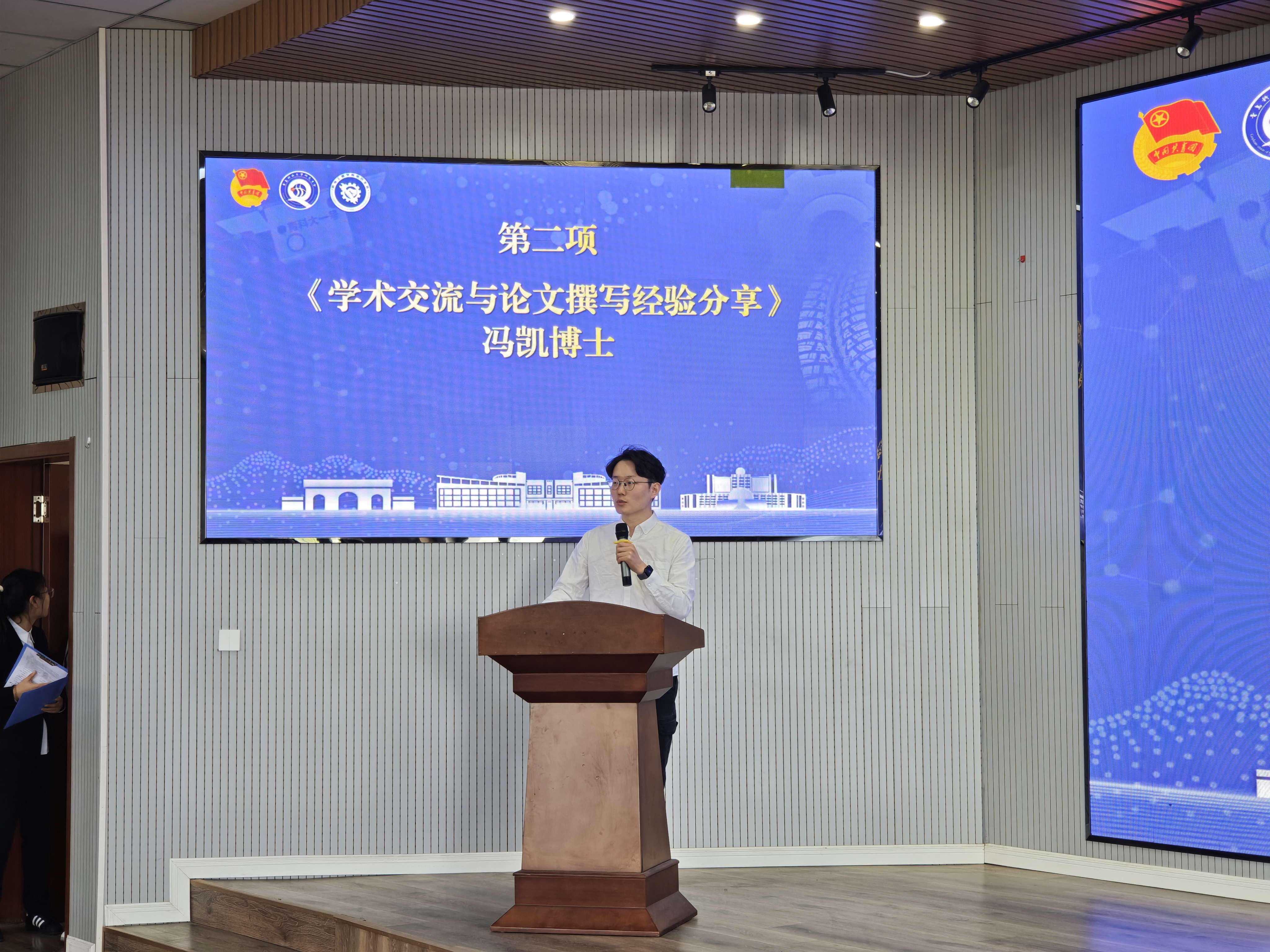 冯凯以“学术交流与论文撰写经验分享”为题,系统阐述了学术研究的全流程。在学术交流方面,冯凯强调要精准提炼研究亮点,构建逻辑清晰的报告框架,针对论文撰写,冯凯详细解析了文献调研的系统性方法,强调通过多维度数据库检索与文献脉络梳理形成创新切入点。此外,冯凯还结合跨学科项目案例,对团队协作中分工统筹与资源整合的关键作用进行深度探讨。最后,冯凯鼓励研究生主动与导师、同学互动,为个人学术成长注入持续动力。