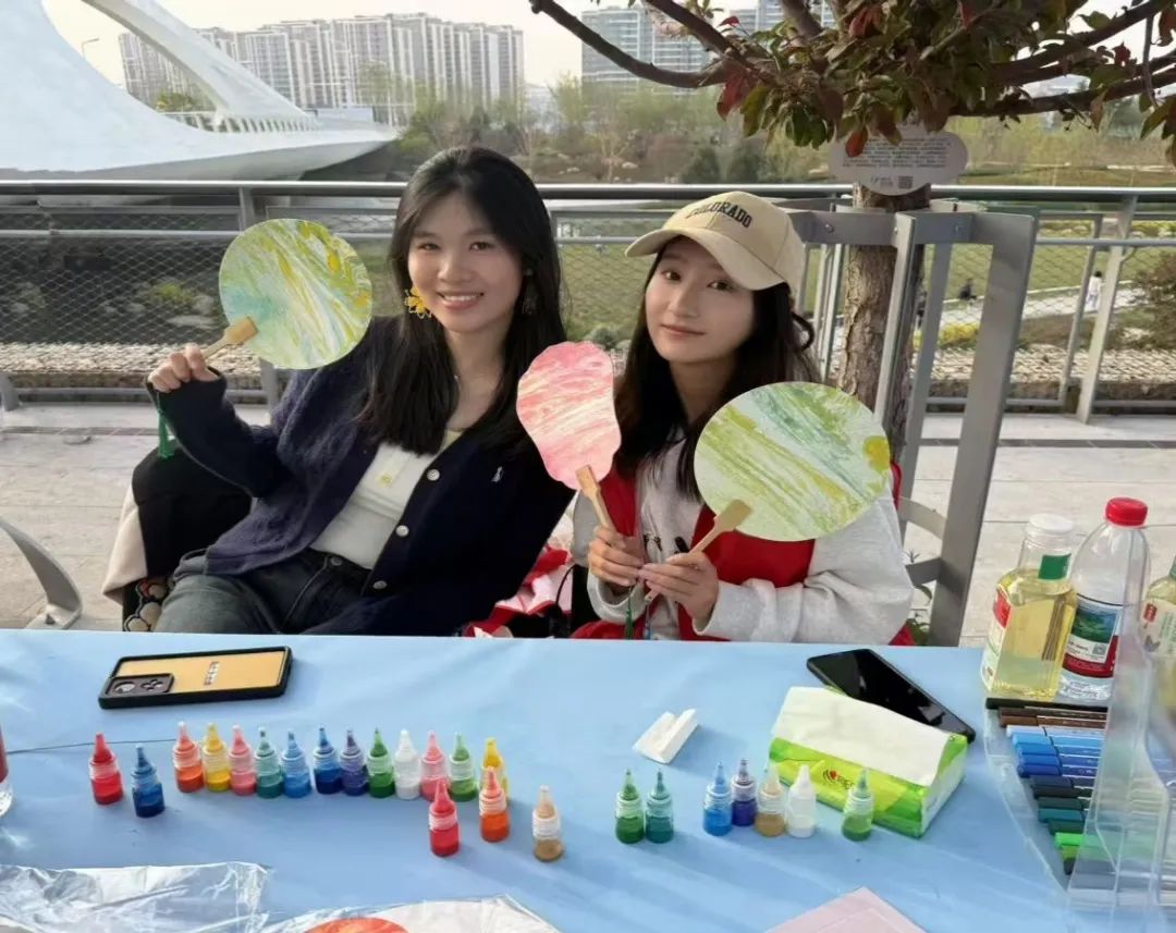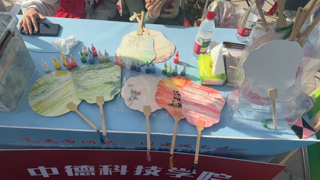 为响应新时代文明实践号召,弘扬中华优秀传统文化,积极响应“百万大学生进社区”社会实践活动号召,4月27日,中德科技学院团委依托董家下庄地铁站青年志愿服务大集暨青潮澎湃市集平台,精心打造“漆扇”非遗传承与公益融合特色摊位。