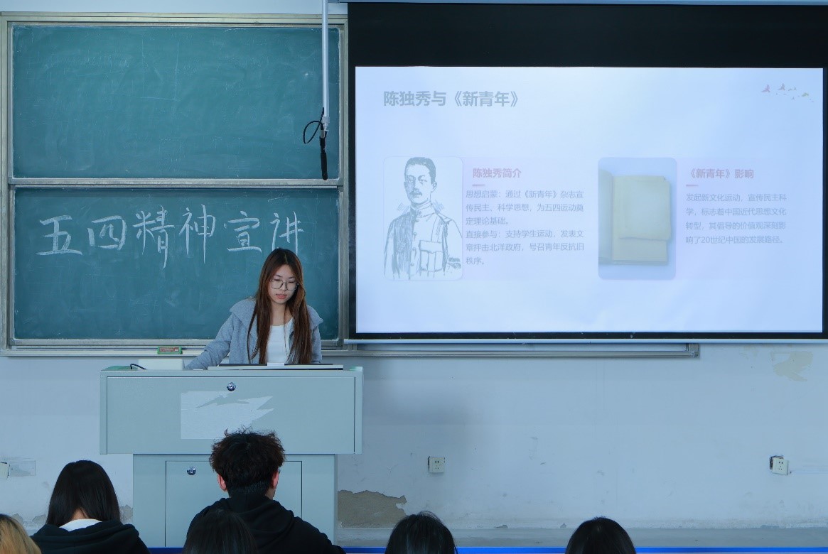 “青春当有为,五四展风采”青年故事宣讲会拉开帷幕。活动围绕五四运动关键人物与重大事件展开,重现“火烧赵家楼”“学生游行示威”等震撼场景。同学们用生动语言、真挚情感,再现五四运动中青年的热血与担当,深刻解读五四精神内涵。