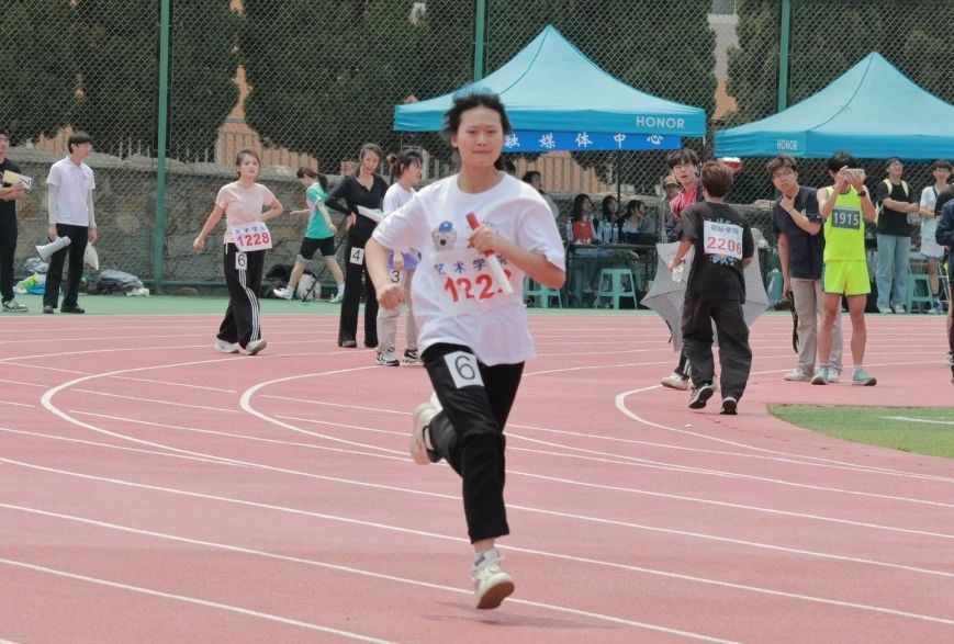 比赛过程中,艺术学院的师生们踊跃参与各项赛事。田径场上,运动员们步伐矫健,奋力奔跑;跳远、跳高区域,选手们一次次尝试突破自我;铅球和实心球项目,同学们沉稳发力,展现力量之美。团体项目中,师生们配合默契,接力赛的交接、拔河时的呐喊,处处彰显着团结协作的精神。赛场边,志愿者们穿梭忙碌,贴心服务运动员、维护赛场秩序,成为运动会顺利进行的坚实保障。