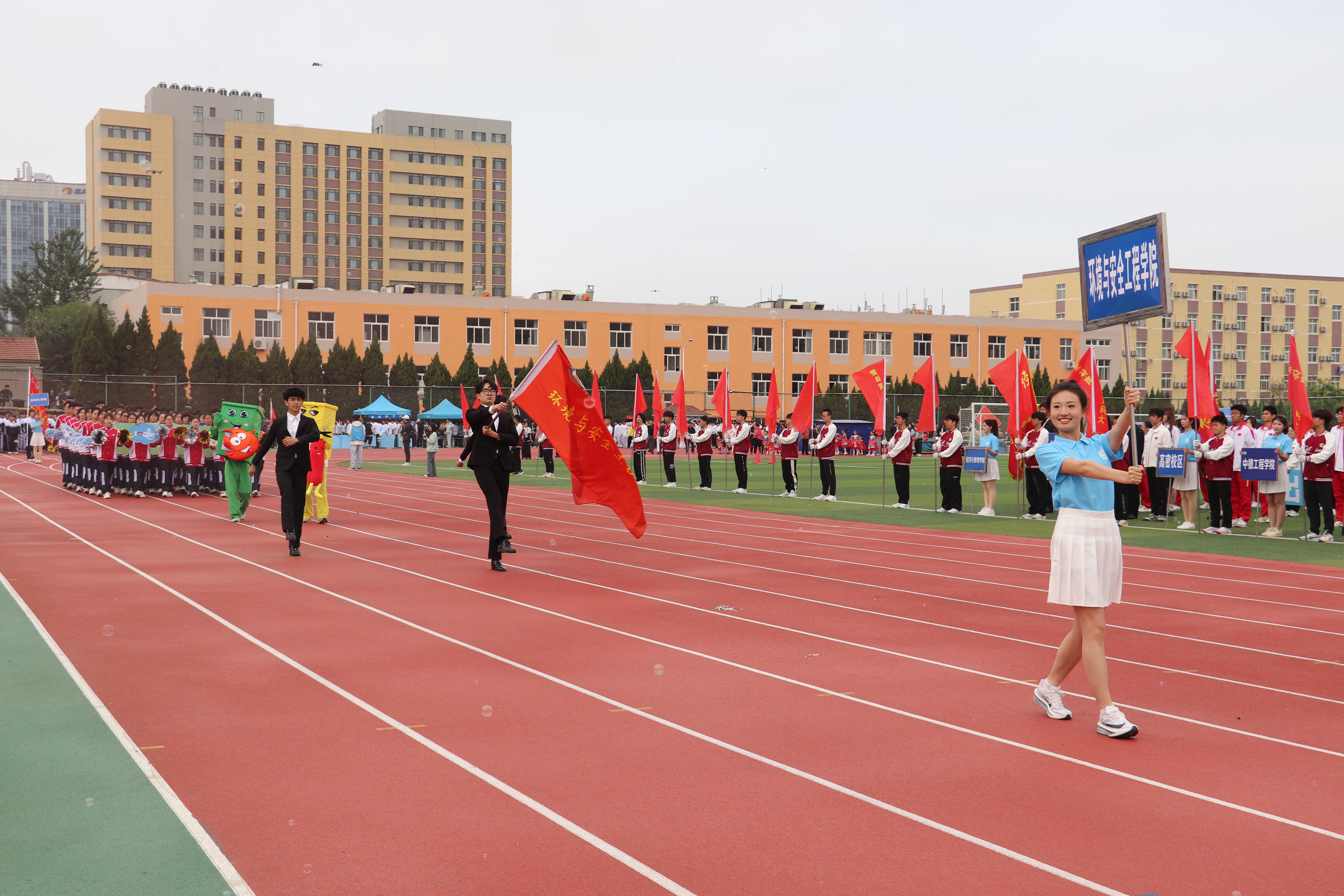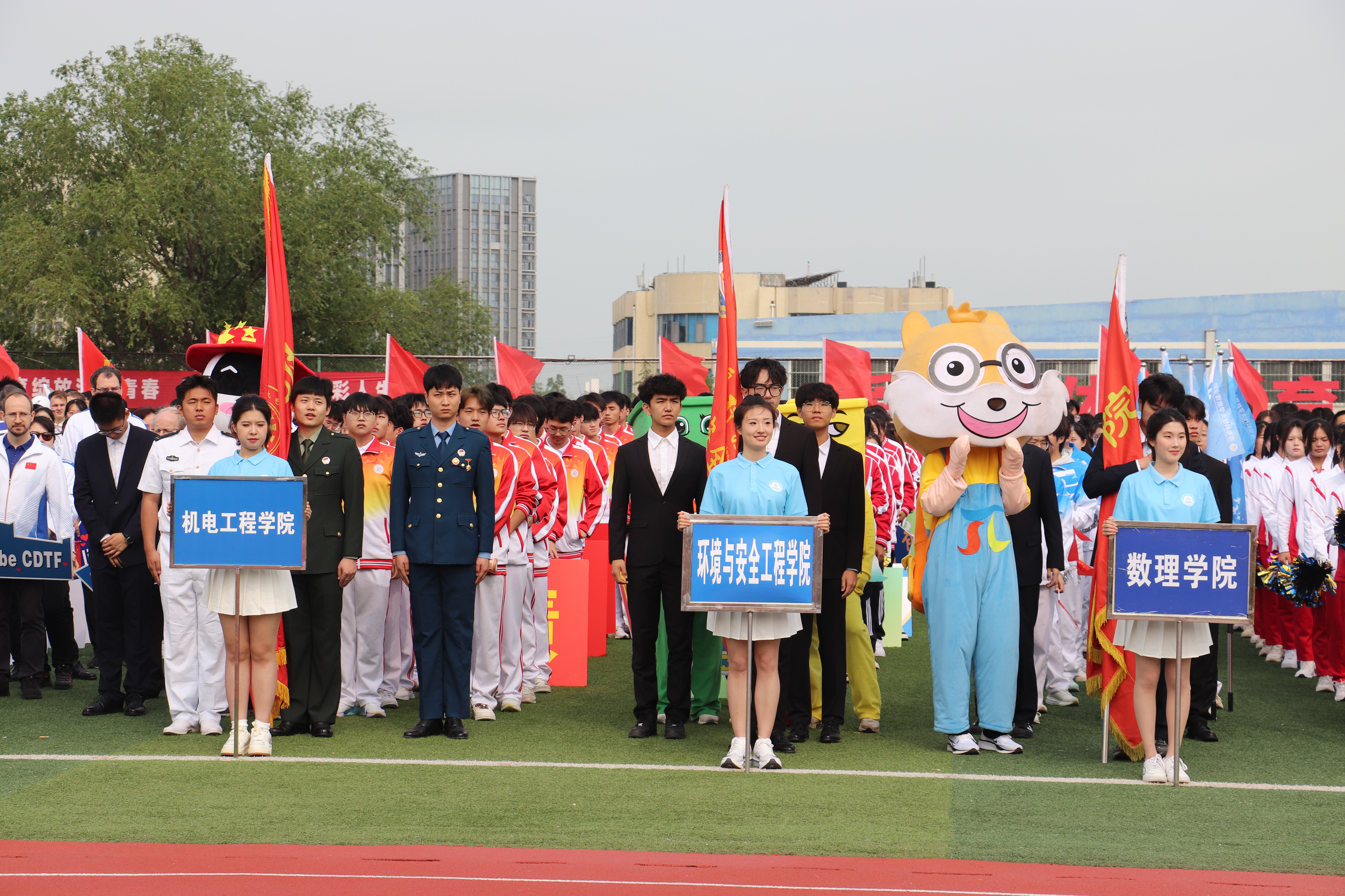 随着《运动员进行曲》的节拍,环境学院方队迈着整齐的步伐,喊着响亮的口号走向主席台。方队前列的垃圾分类主题玩偶,手持灭火器模型和 “火苗” 道具,俏皮的动态设计让垃圾分类 、安全等理念深入人心,展现出新时代环境学子的青春与风采。