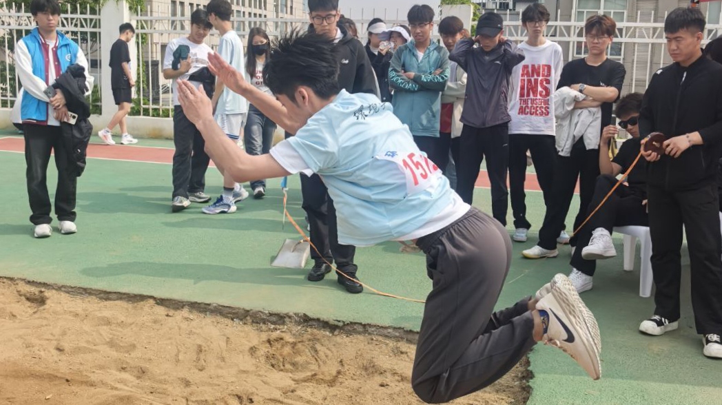 看台上,环境学院观众用挥舞的院旗、震天的鼓点、创意十足的手势舞,将全场气氛推向高潮。他们用热情为运动员注入能量,用文明观赛彰显学院风范,成为赛场外最亮丽的风景线。