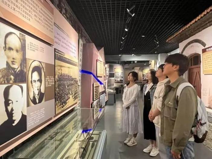 在专业讲解员的引导下,青年学子依次参观“峥嵘岁月”“光辉历程”“红色传承”三大主题展区。展馆内,300余件珍贵历史照片、文献手稿和实物展品,全景式展现了青岛党组织从诞生到引领革命、建设、改革事业发展的壮阔历程。驻足于中共青岛地方支部旧址复原场景前,同学们通过全息投影技术重温邓恩铭、王尽美等革命先辈在青岛播撒革命火种、领导工人运动的峥嵘岁月。一封封泛黄的书信、一件件斑驳的实物,生动诠释着共产党人“为有牺牲多壮志”的崇高境界,令在场青年深受触动。