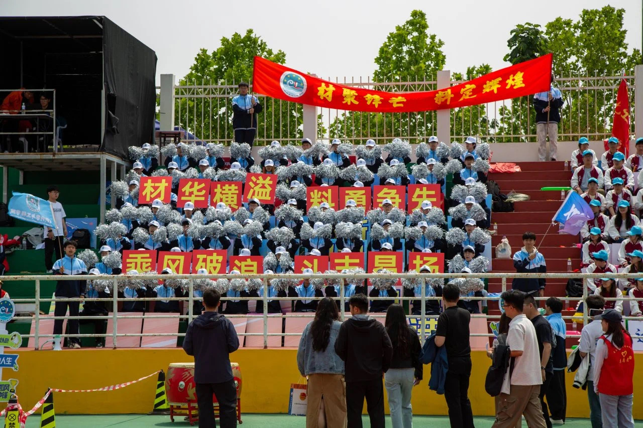 赛场上,材料健儿们火力全开。在1500米长跑赛道上,他们如坚毅的“碳纤维”,凭借超强耐力突破自我;跳高场地前,腾空跃起的身影似柔韧的“纳米材料”,一次次刷新高度;4×400米接力赛中,交接棒的瞬间如同精密的“材料合成工艺”,将速度与默契完美衔接。看台上,由学院学生组成的观众手持印有“材华横溢,料勇争先,乘风破浪,斗志昂扬”字样的加油板,加油声浪此起彼伏;志愿者团队全程待命,为运动员提供最坚实的后盾。