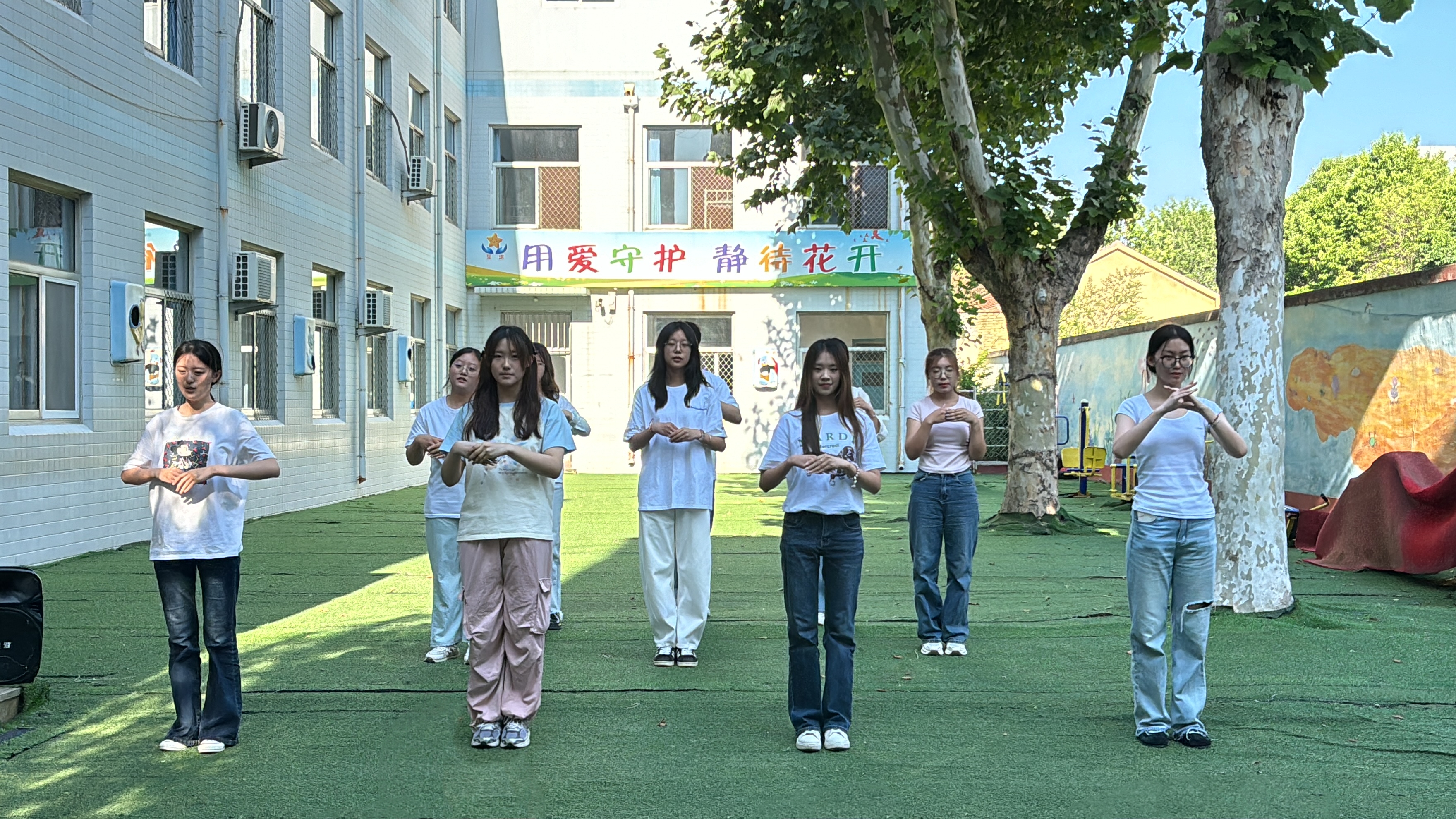 之后,在充满期待的氛围中,志愿者们精心准备的文艺表演拉开序幕。手语操《逆光》传递着坚韧与力量,合唱《蝴蝶泉边》用歌声编织美好,独唱《左手右手》《不怕》鼓励孩子们勇敢前行……志愿者们用生动的演绎和热情的笑容,吸引孩子们专注投入。表演过程中,孩子们不时鼓掌欢呼,现场洋溢着温馨欢乐的氛围。