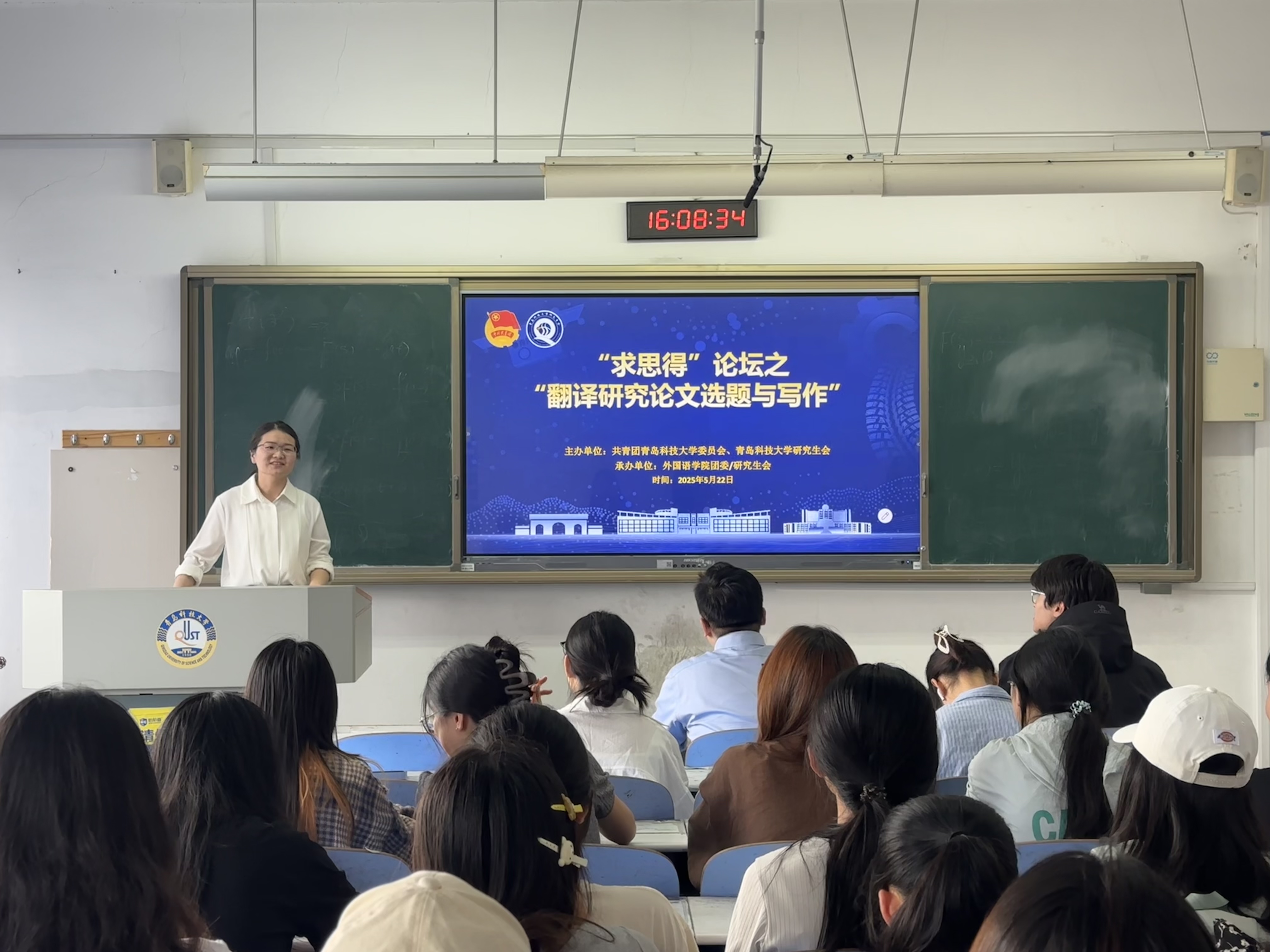 外国语学院团委“求思得”论坛立足学术写作和翻译学科发展,结合人工智能、翻译技术革新等前沿趋势,为翻译硕士提供学术参考和实践指导,助力学生在“翻译+技术”复合型人才培养模式下,适应跨境电商、国际会议等多元化应用场景,持续提升语言专业素养,拓宽国际化视野。