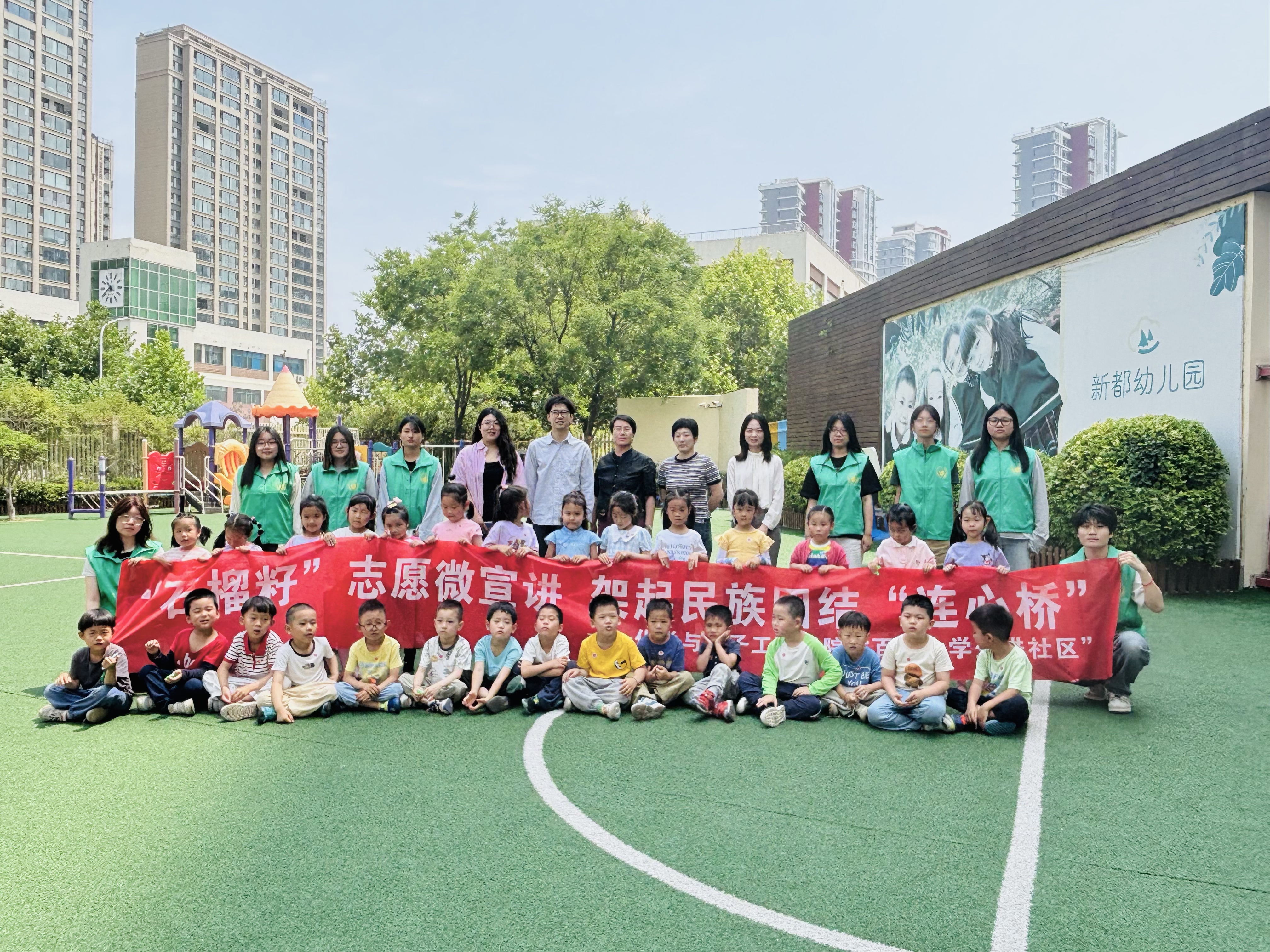 为深入贯彻落实习近平总书记关于加强和改进民族工作的重要思想和中央民族工作会议精神,6月6日,化学院团委联合市北区新都幼儿园开展“石榴籽”志愿微宣讲 架起民族团结“连心桥”——百万大学生进社区活动。