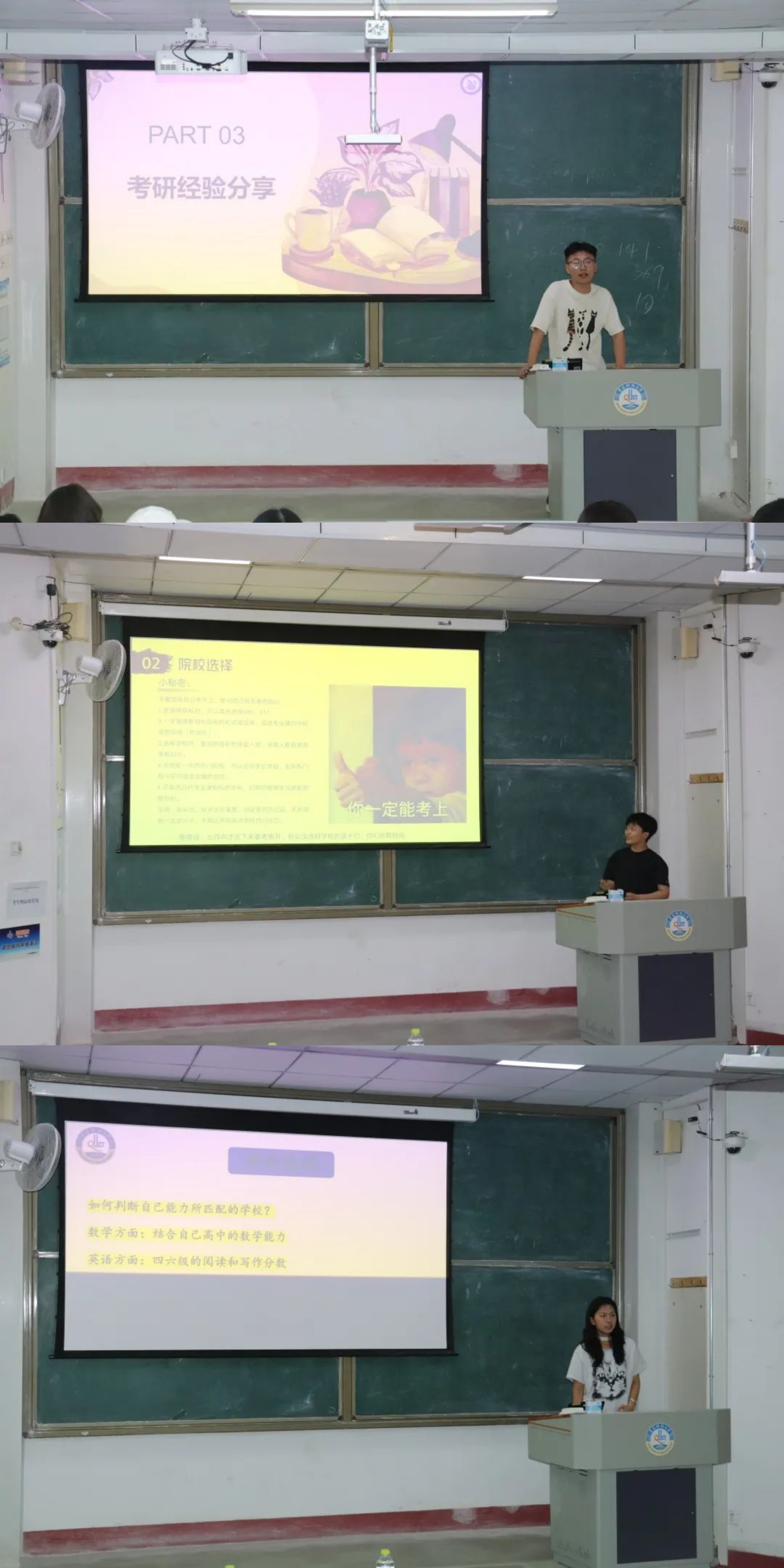 在考研经验交流环节,环境工程专业韩京佐、何梦雨、张怡然、王晓、范子豪,环境科学专业王冰倩,安全工程专业赵宗强等成功上岸的学长学姐,从择校择专业策略、各科复习方法,到应试技巧与心态调整,全方位分享备考干货。